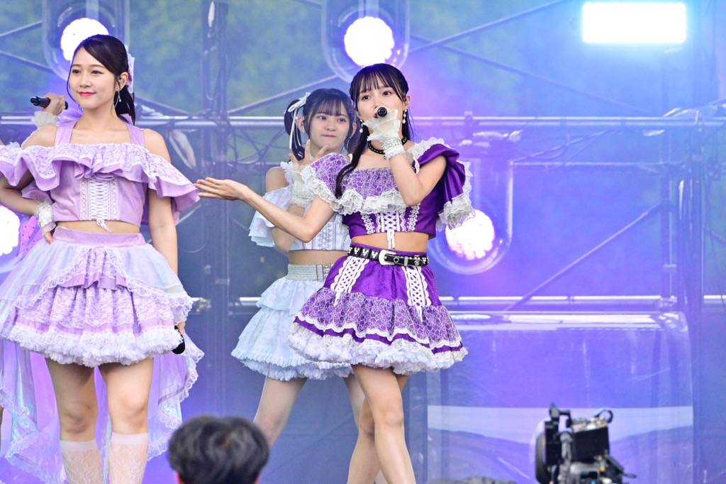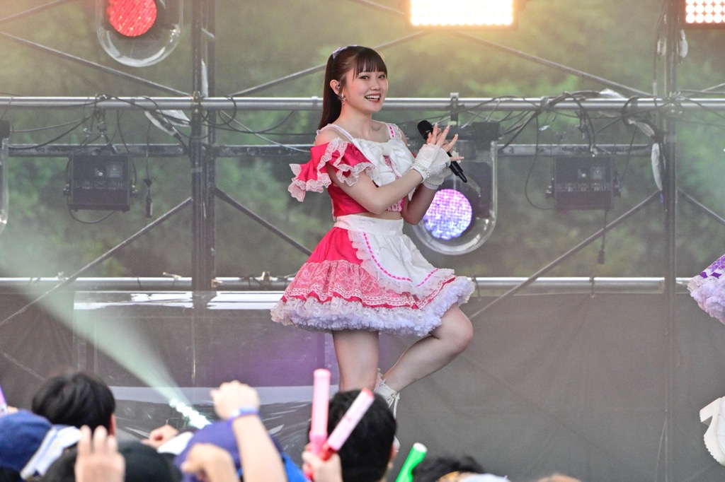 そこから切ないサマーチューン「悲しみがとまらない」、そして「LuckyFes、騒げ!」という掛け声からキュートに挑発してくる曲調の「妄想だけならフリーダム」、そして「大好きなのに、大好きだから」では拳を突き上げ、メンバーたちが舞台の幅から幅まで熱を煽っていく。