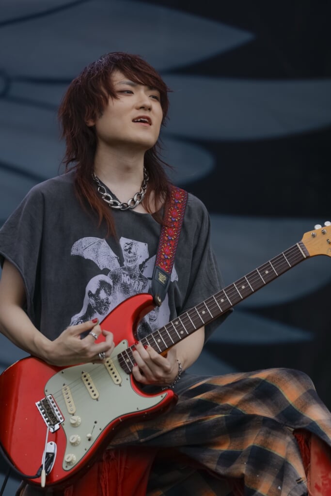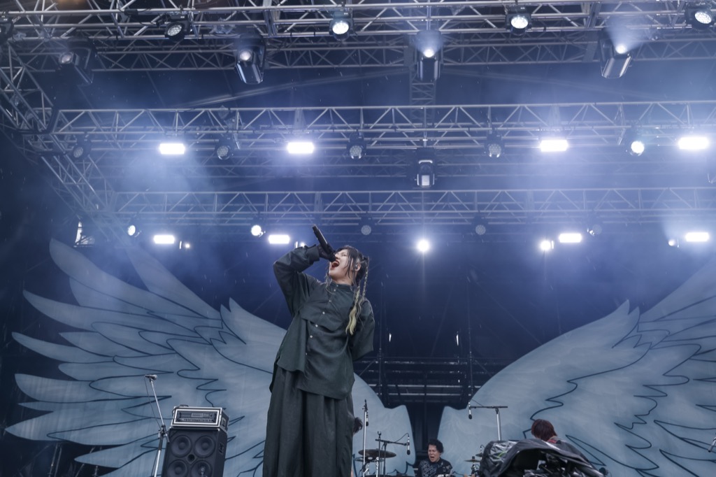そして、ここで谷絹が昨年のライブを振り返りつつ、明日はWING STAGEのトリを務める東京スカパラダイスオーケストラにゲスト参加することを告げ、ライブ後半戦へと入っていったのだが、その流れもまた素晴らしかった。余計な言葉は挟まずの6タテ。R&B的な歌い回し、ファンキーさと重みを兼ね備えたサウンドも印象的な「ノックブーツ」、「ここから舞い上がりましょう!」「雨に負けるんじゃない!」と谷絹が改めて檄を飛ばしての「Banquet」。力強く揺らすフロウにスクリームも混ぜつつ、そこへ加えた言葉もまた良かった。