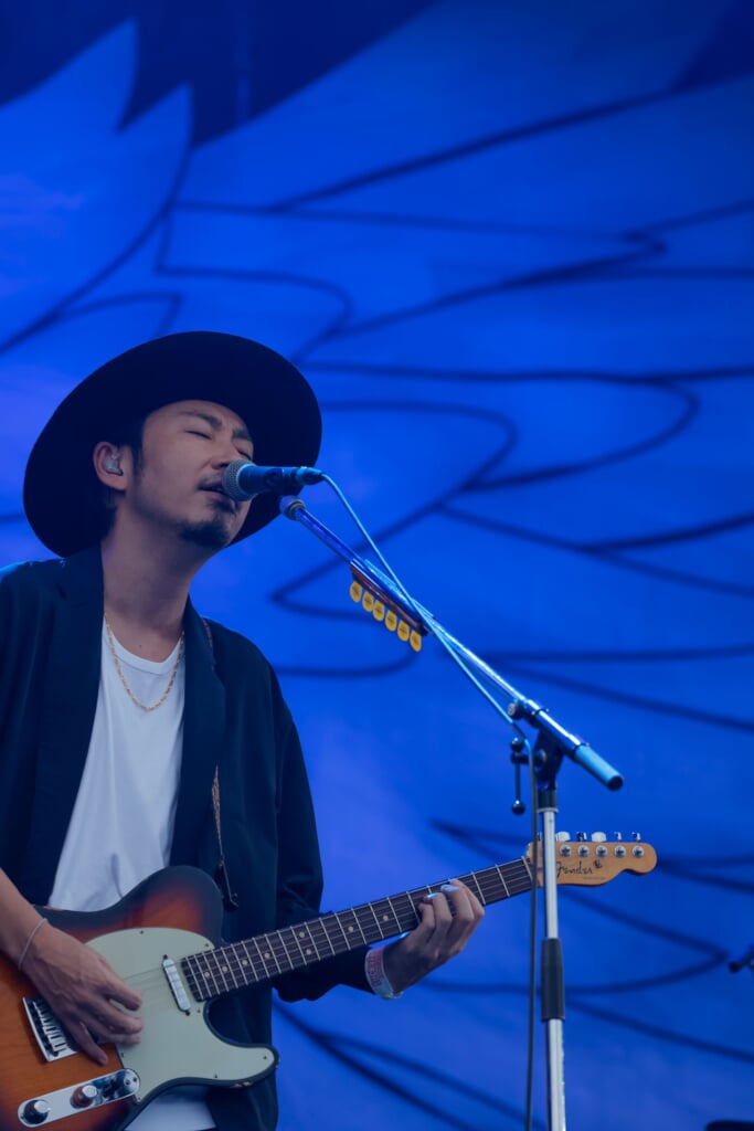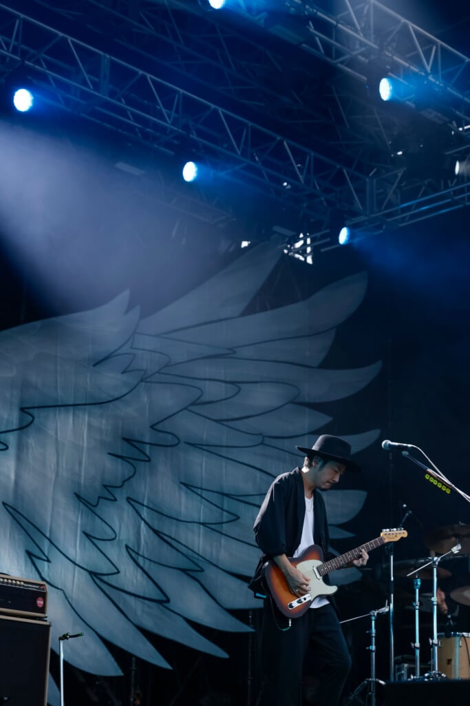 「イェー!」とシャウトしながら、前に出てきて、気持ちよさそうにギターを鳴らしていた大木を筆頭に、3人はこの場所でライブができる喜びを素直に発露させている。ACIDMANはメジャーデビュー当時から<ROCK IN JAPAN FESTIVAL>に出演し、国営ひたち海浜公園でのライブを重ねながら、バンドの歴史を紡いできた。MCでは大木から、この場所で<LuckyFes>という新たなフェスが始まったことを嬉しく思ったこと、「ぜひ出演させてもらいたい」という気持ちでオファーを引き受けたことが明かされる一幕が。また、先日亡くなった<ROCK IN JAPAN FESTIVAL>のプロデューサー・渋谷陽一氏への想いも語られた。