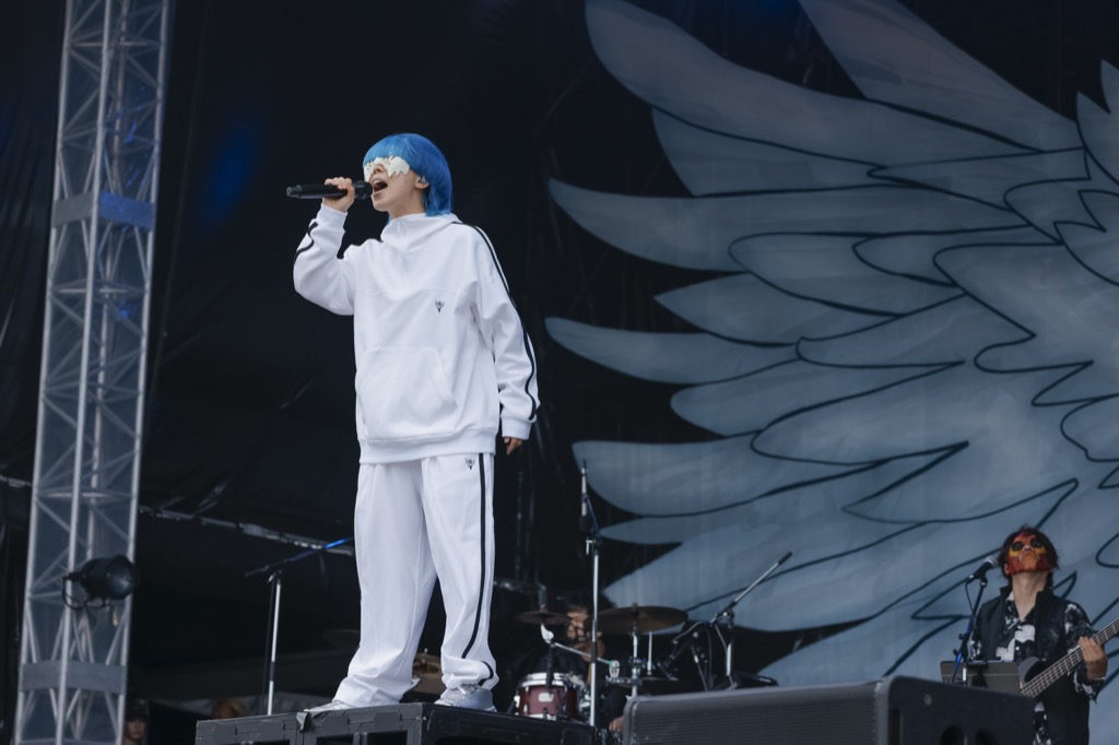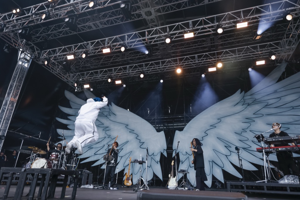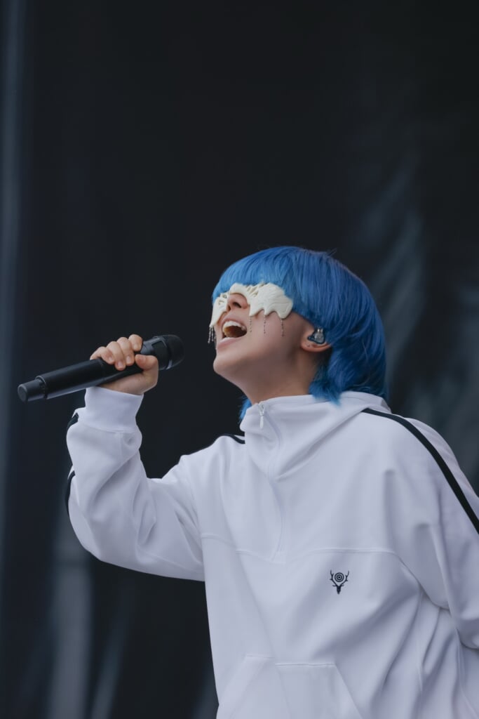 直後、《さぁ 進め 雲つきぬけ》と歌うyamaの力強いボーカルが、観客の心の真ん中を射貫いた。1曲目は「ハロ」。夏の野外にぴったりの爽快なナンバーだ。yamaは早々にお立ち台に上がり、拳を突き上げる観客を煽り、観客にも歌ってもらおうとフレンズにマイクを向けている。去年も一昨年も音楽でフレンズと通じ合った経験が、yamaの心をオープンにさせているようだ。