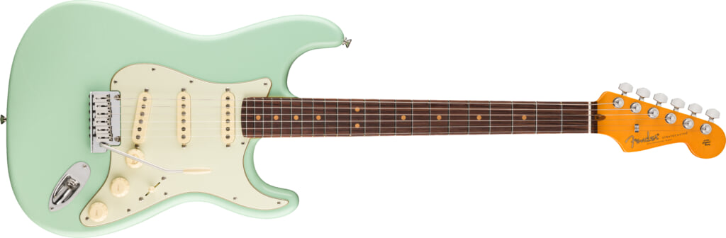 シリーズにはHSS仕様の’60s Stratocaster(R)もラインナップされており、ヴィンテージらしさはそのままに多彩なトーンが拡張されている。フロントはパワフルなPure Vintage ‘61シングルコイルストラトキャスターピックアップ、リアはHaymakerハムバッカーだ。このモデルもエイジドHeirloom(TM)ニトロセルロースラッカー仕上げが施されている。