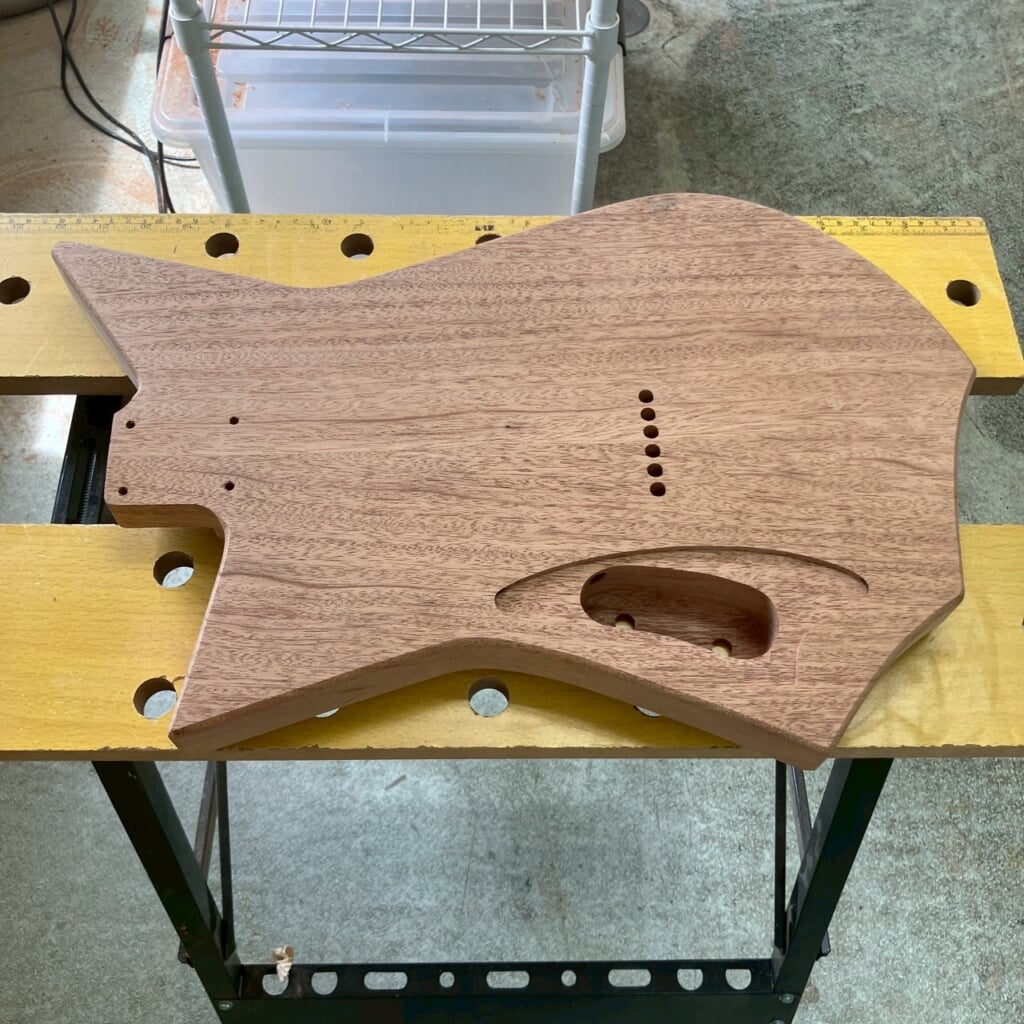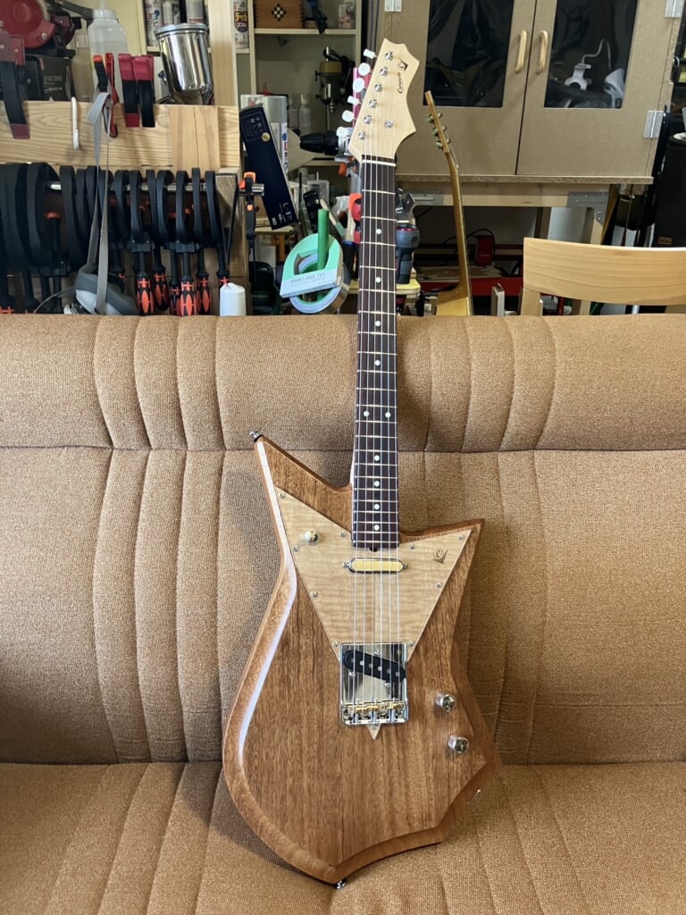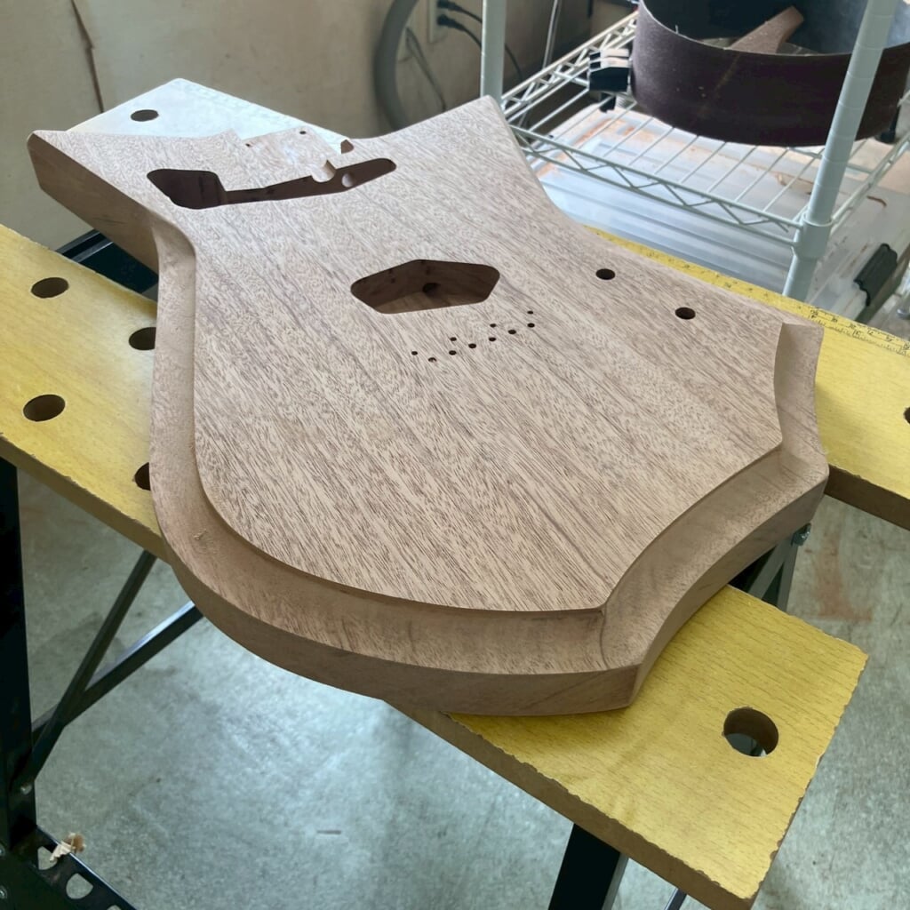 以前のコンペイトーと同じく40mm材だが、今回はマホガニーを使いたかったので軽量化できないかと思案していたところ、ジャーマンカーブだ!と閃きました。私は全てハンドルーターで仕上げていますが、今回新たなルータービットを購入して加工したところイメージ通りの良い仕上がりに!あえて道管を埋めず木材の質感を生かして薄いラッカー塗装を施して仕上げました。CGKには珍しくウッドマテリアルを強調したモデル。気に入ってます!