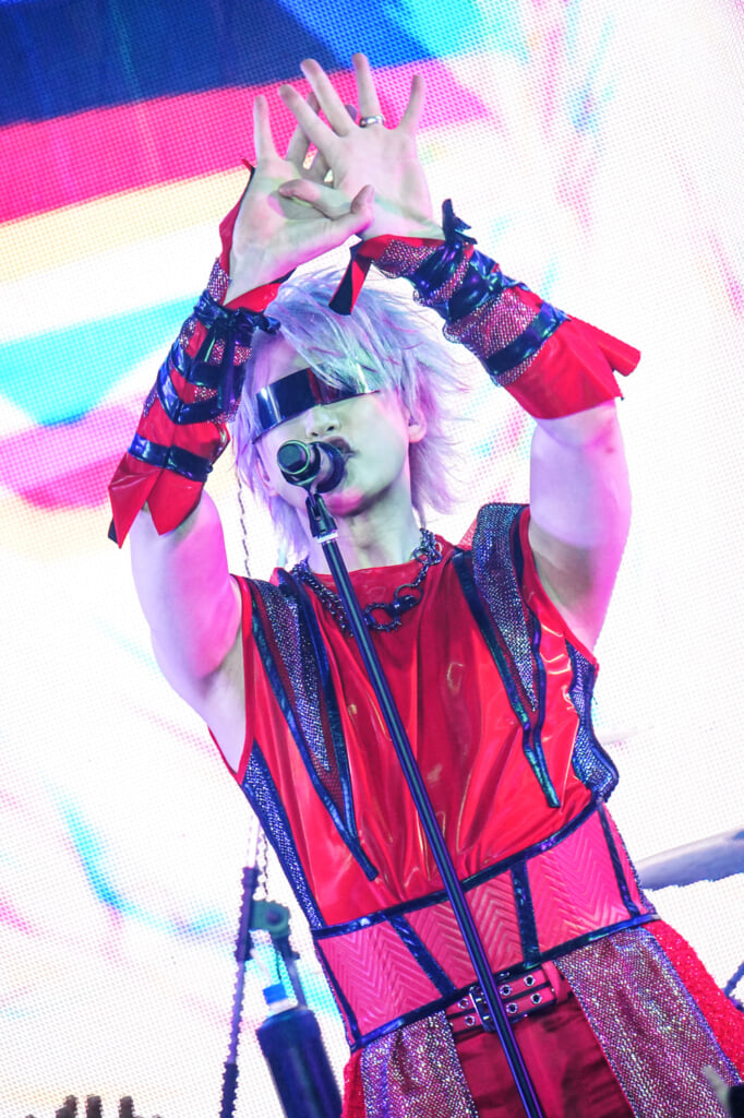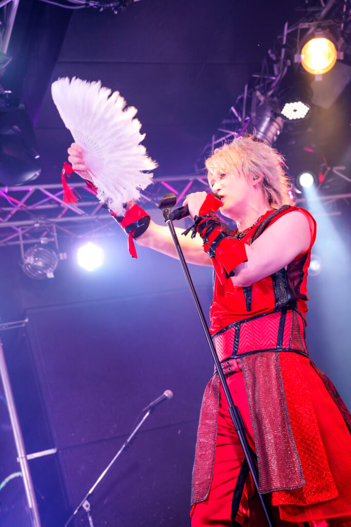 そして扇子で自らを仰ぎ、フロアに色とりどりの艶やかな扇子が揺れるダンスナンバー「D.D.HEAVEN」(S.Q.F)ではマイクをフロアに向けて、みんなを煽る。michi.は妖艶な祭典を司どる君主のようだ。