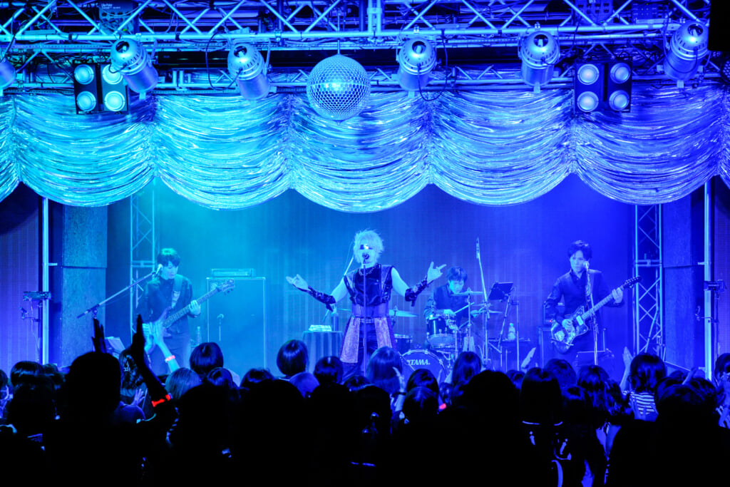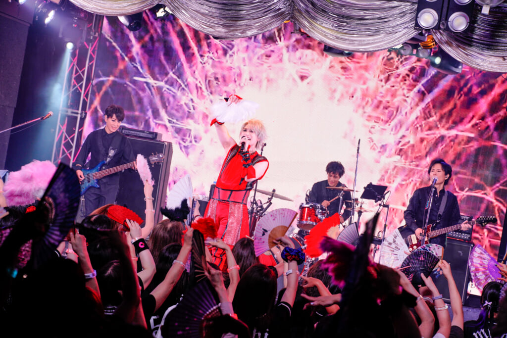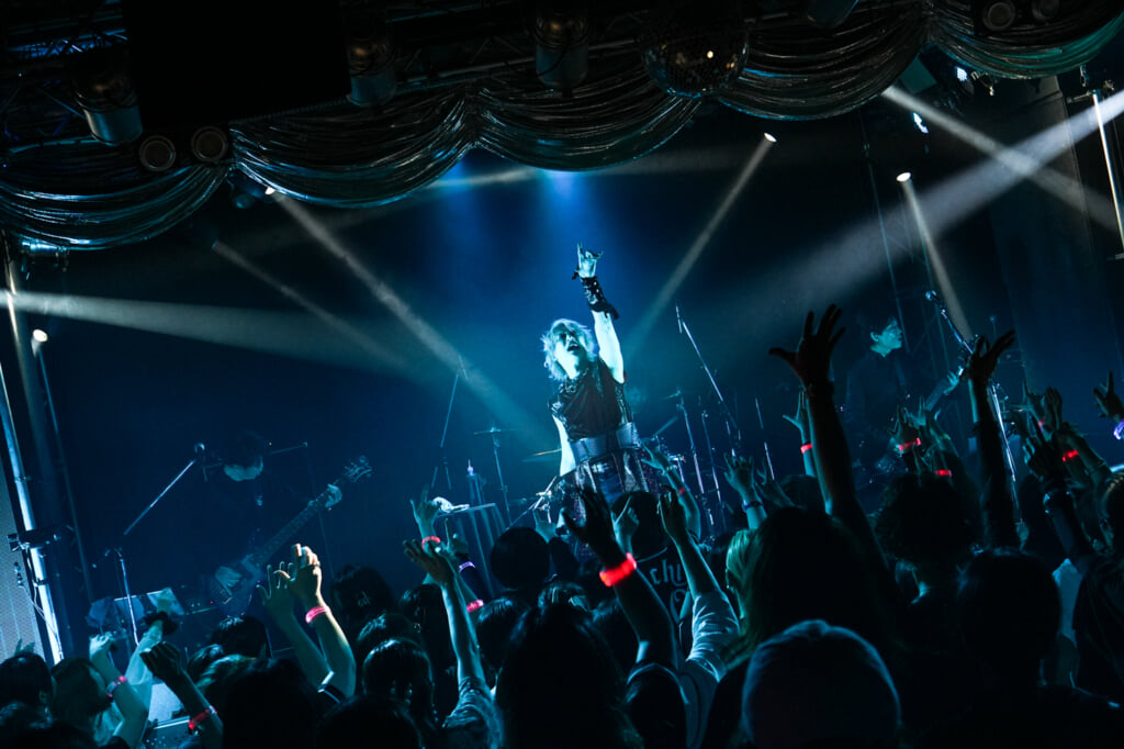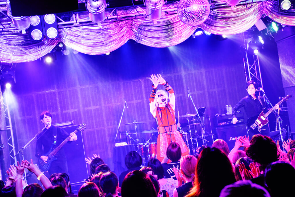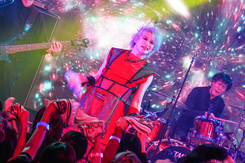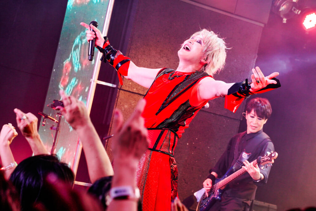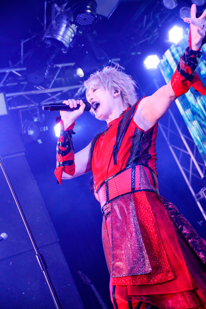 そして、ギターの菅大助とmichi.がS.Q.F以来コラボしたという新曲が生まれたことを伝え、「一緒に赤羽ReNYを揺るがしていこうぜ!」と披露したのはこの日、2曲目の新曲「Deeper than Darkness -漆黒の瞳-」だ。闇に射す光を想像させる演出も印象的なダークでエッジのあるナンバーで魅了し、前回ワンマンで初披露した「INCUBUS」(michi.)では夜の支配者のようなmichi.のボーカルとパフォーマンスが圧巻。ダークサイドの2曲に大きな拍手が沸き起こった。