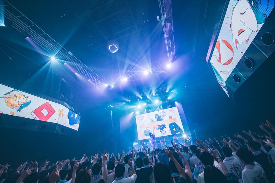 ドラムがカウントを刻み、投下された「パステルレイン」では、ダイスケリチャード氏のイラストとともに360度スクリーンに赤や青のポップな雨粒が降り注ぐ。そんな中、みあもステージ中央のお立ち台にあがり、一気に観客との距離を縮めていった。そこから弾ける炭酸と春の彩りを表現した甘酸っぱい恋の歌「ピンクレモネード」で青春の風をフロアになびかせると、ジャンプするオーディエンスと序盤から大きな一体感を作り上げる。