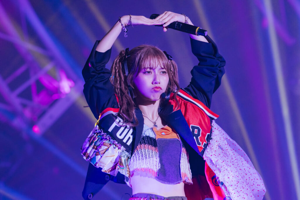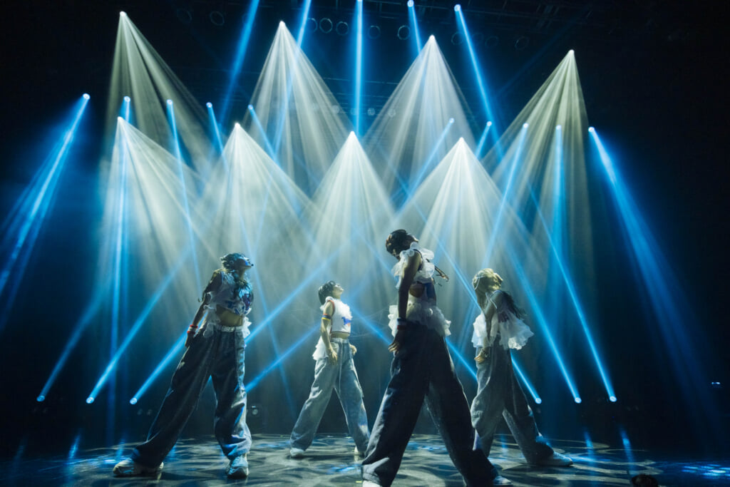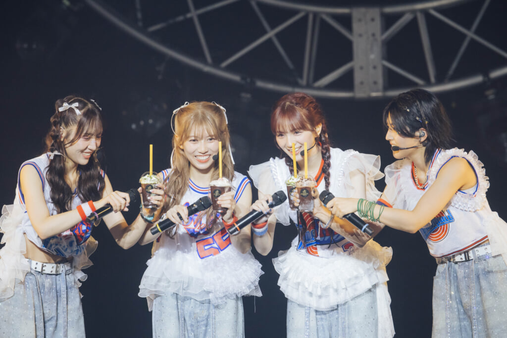 1部の開演前には、ギネス記録を持つ小学3年生のDJ RINOKAがステージへ。堂々としたDJプレイを披露し、オーディエンスの鼓動を高鳴らせた。そして会場に高揚感が満ちたタイミングで、スポーティな衣装を身にまとった愛来、市川優月、小島はな、鈴木萌花がColors(AMEFURASSHIファンの呼称)の前に姿を現した。