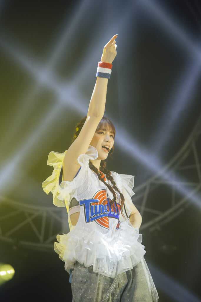 この曲を象徴する横移動の“カニダンス”パートに移るとフロアから歓声が沸き起こり、続く「Magic of love」では川崎ブレイブサンダース チアリーダーズ IRISの4人がセクシーな踊りでライブに華を添えた。さらにAMEFURASSHIはタオルや光るうちわを持ってステージ上で躍動し、多彩なパフォーマンスで会場の盛り上がりを加速させた。