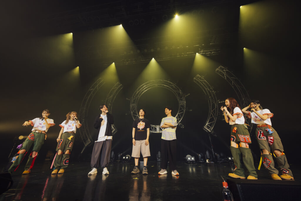 続くゲストのRAM RIDERとのコラボでも場内に熱狂の渦が生まれた。原曲は1分40秒という短い尺の「MOI」がロングバージョンで披露されたり、「Drama」の“カニダンス”パートでメンバーの動きがストップするアレンジが施されたり、「メタモルフォーズ」がクラブ仕様に強化されて鳴り響いたりと、リミックスバージョンならではの特別な展開に会場全体が夢中に。本編最後の「ALIVE」に至るまで、ライブハウスで音楽を体感することの醍醐味が感じられるライブが続いた。
