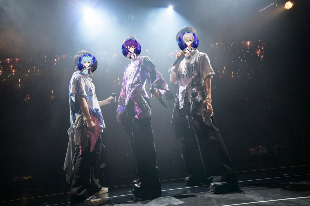 そんなあまねの勢いある煽りから、「GO GO Crazy」に突入。しぇる。、せーあ、まひろまる。、めお。という歌唱力つよつよのボーカルチームが黒ジャケットに身を包み、ハードな雰囲気で固める。途中でおとみや、そあらくん、どろっぷ、パルオの可愛さ爆発ダンスチームがフェードインして、歌うは「スキスキ星人」。ハッピーオーラ全開のパフォーマンスで、最後は投げキッス+ハートを4人で作る。「いーあるふぁんくらぶ」は、めお。、しんどうじ、かんパリという組みあわせ。チャイニーズテイストの曲調とダンスが可愛い! 「可愛くてごめん」はボーカルのおとみやに、十六夜ルクスとパルオがダンサーという構成。「最後まで可愛いよ」と言うパルオに、「ありがとー!」と笑顔のおとみやだった。