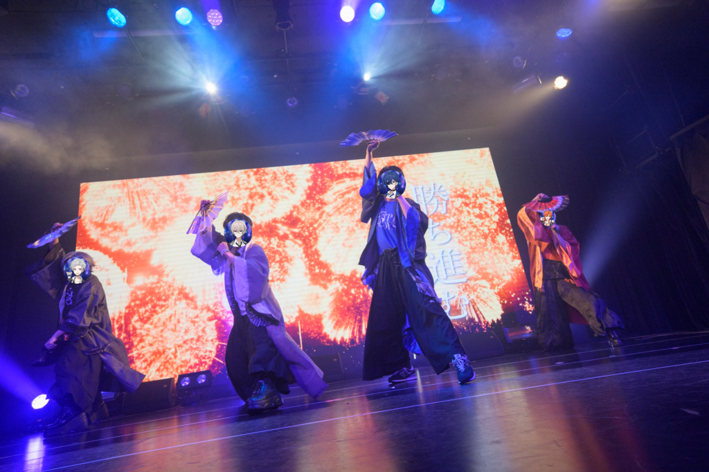 煽り映像のあと、かんパリ、しぶらいん、しんどうじ、灰染凜のテンションぶち上げな個性派チームが、ホストクラブをテーマにした「Club A×C」を歌い上げる。衣装も含めて、いつの間にかharevutaiがホストクラブに!? 一方、和な衣装と扇子で「最終決戦」をビシッと決めてくれたのは十六夜ルクス、つきしろやしろ、はりま、ものくろのダンスも歌もキメてくれるチーム。最高潮の盛り上がりを見せ、ライトが落ちると、間髪入れずアンコールの声がリスナーから巻き起こる。
