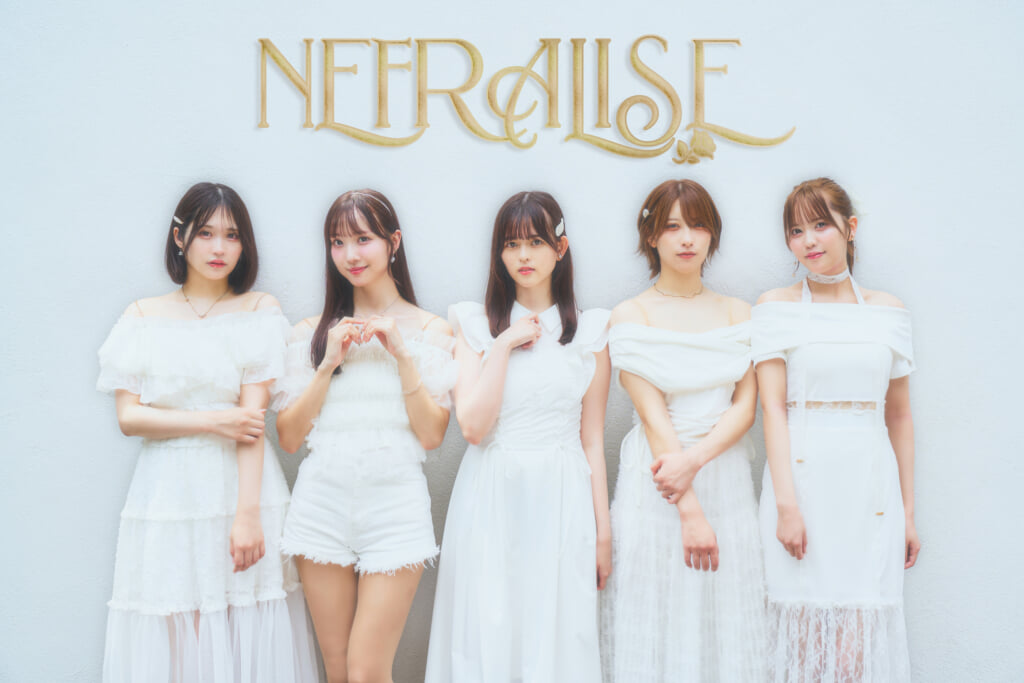 NEFRALISEは「Never Fray, Rise」=「決してほつれず、ただ上昇する」という想いをベースにした造語で、可憐さと大人びた美しさを併せ持つ女性アイドルグループだ。全員が160cm以上と高身長メンバーで構成され、華奢で儚げながらも、確かな芯と覚悟を持ってステージに立つという。