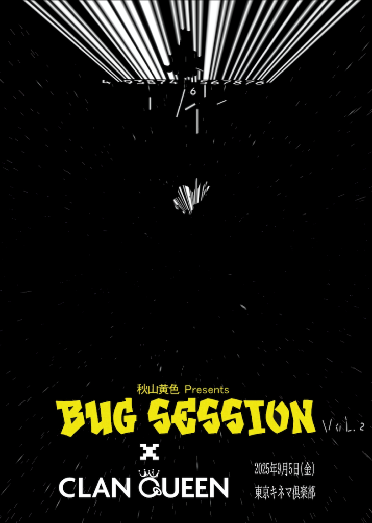 またライブについては、全国9カ所のライブハウスを巡る秋山黄色のライブハウスツアー<秋山黄色 LIVE HOUSE TOUR 「鬼奏本能」>を先日発表したばかり。ファイナルは自身初の舞台となる東京・恵比寿LIQUIDROOMで行われる。そして、2025年9月には<秋山黄色 presents「BUG SESSION vol.2」>を開催。今回は活動の全てがコンセプチュアルである事=“アートロック”を標榜する新世代ユニット・CLAN QUEENを迎え、会場は雰囲気たっぷりの東京キネマ俱楽部にて開催される。
