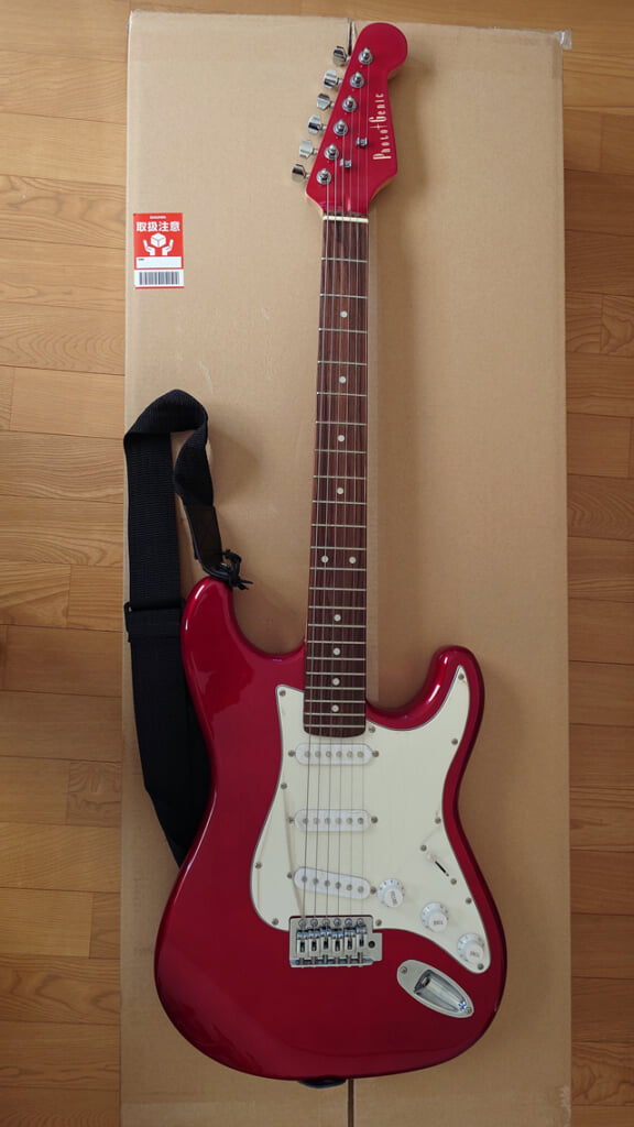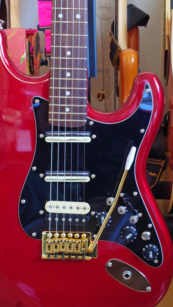 「そういえば高校のときに赤いストラトキャスターが欲しかったなぁ」と思い出し、オークションでポチり。念願の赤いストラトタイプがコレクションに加わりました。しかも手持ちに無かった3シングルコイル仕様。