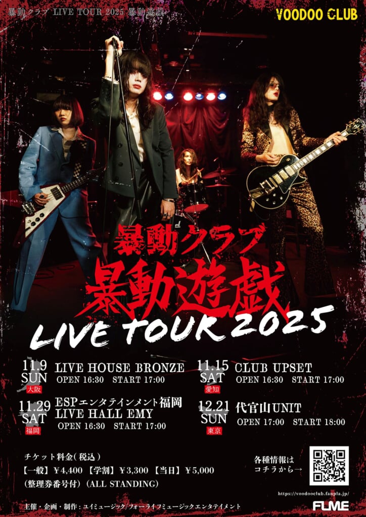 11月9日からは<暴動クラブLIVE TOUR 2025暴動遊戯>が大阪・名古屋・福岡・東京で開催となる。