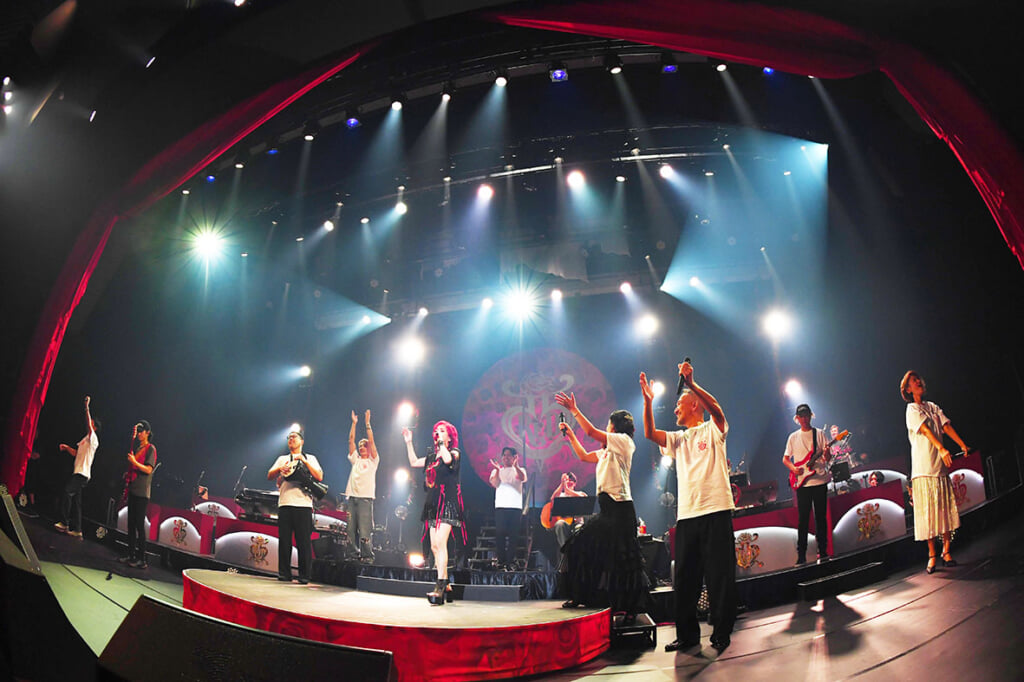 そこから現在制作中であり、今秋発売予定のアルバム『55 RED』収録新曲や、周年ツアー等ではなかなか聴くことができないアルバム収録曲など隠れた名曲がアカデミックに披露されていく。中盤は『情熱大陸』でも取り上げられた幻想的で美麗なポールダンスに沿うように歌う新曲「Crystal Angel」を披露。ヨーロッパのクラシックバレエ世界を思わせるナイーブなステージングに客席が感動の渦に包まれる。