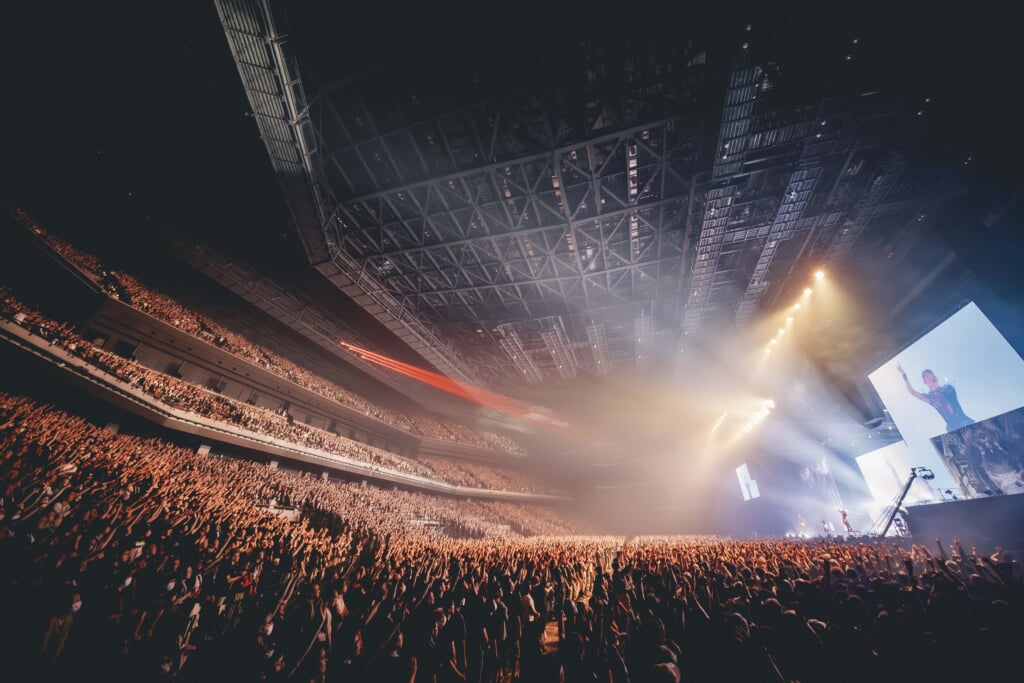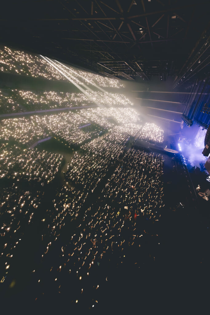 更に「METALI!!(feat.Tom Morello)」では、イントロから神バンドのソロ回しでオーディエンスを盛り上げると、BABYMETALのメンバーは花道を回りながら観客を地べたに座らせ、MOMOMETALの「Are you ready?!」のグロウルの合図と共に一気にジャンプ!!その後も「Kon! Kon! (feat. Bloodywood)」「Song3 (feat. Slaughter to Prevail)」と最新アルバム『METAL FORTH』収録曲を立て続けに披露すると、代表曲「ギミチョコ!!」で会場のボルテージは一気にヒートアップした。そして「KARATE」では、途中、ステージが満員の客席からスマホライトで照らされ、光に包まれて会場全体がひとつになった瞬間が本日のハイライトでもあった。「We are!! BABYMETAL!!」。最後の曲「Road of Resistance」のエンディングでオーディエンスとのコールアンドレスポンスを繰り返し、完全燃焼したBABYMETALは清々しくも凛とした勇姿でステージを後にした。