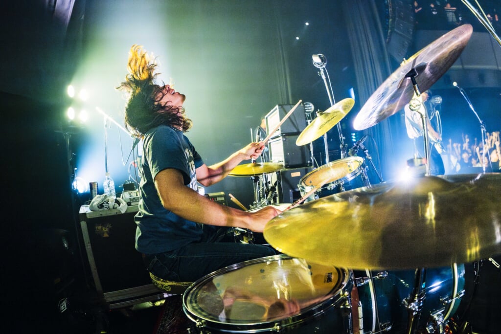 イントロに大歓声が起きた「君が望む永遠」から、一昨年にリリースされたメジャー1stEP『再定義E.P』にも収録されライブ定番曲となっている「死がふたりを分かつまで」と最新アルバム収録曲のみで構成されたライブ前半戦。カズキ(Dr)のダイナミックかつ正確な胸躍るドラム、ニシオカケンタロウ(Ba)のアグレッシブなパフォーマンスと重厚なベースサウンド、クールでテクニカルなプレイで聴く者の心を刺す福島カイト(Gt)のギター。そして、圧倒的求心力を持つヤマトのボーカルと強烈な存在感。息の合った強靭なバンドアンサンブルで魅了しながら、4人の個性やプレイもキラリ光るステージからは、ツアーの成果がしっかり感じ取れる。