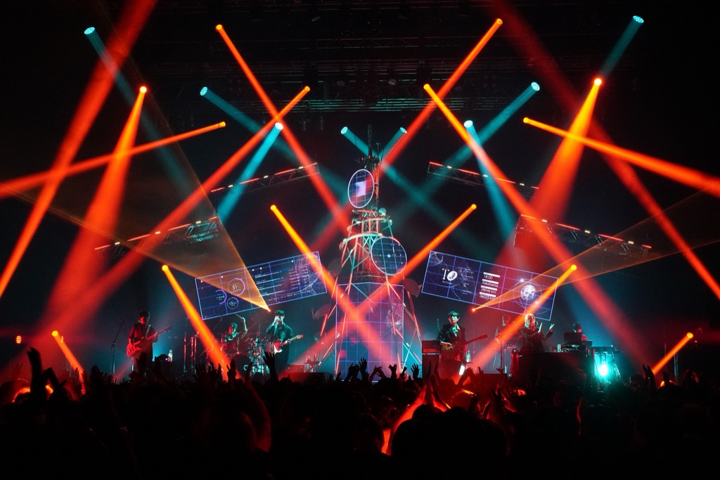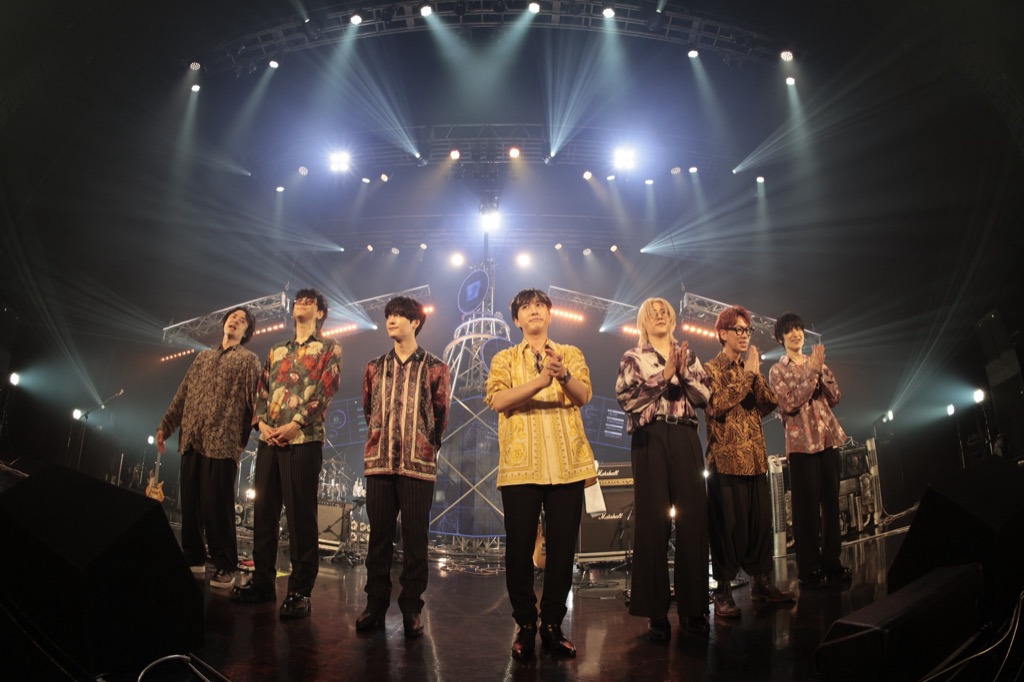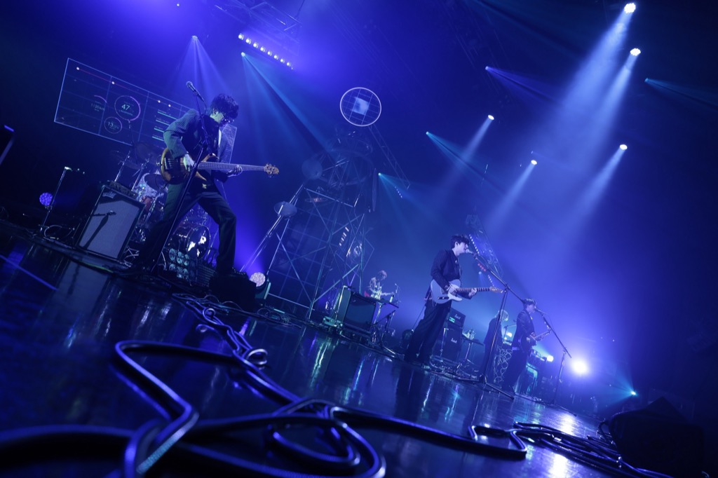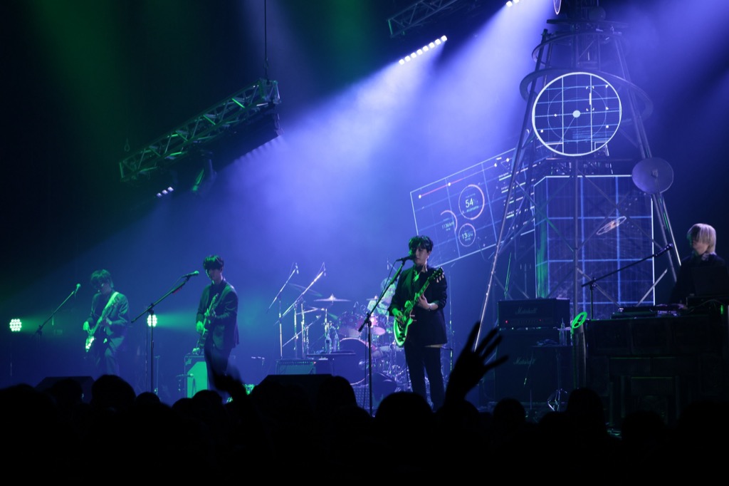 レーザーに照らされる中、近未来感溢れるOvertureが流れ出し、カウントダウンが始まるとメンバーが順番に登場。大きな歓声が上がると、舞台『東京リベンジャーズ-血のハロウィン編-』の主題歌「will」でライブはスタートした。1曲目からヘヴィーでドラマチックなバンドサウンドに乗せて、梅原と中島のツインボーカルが響き渡り、派手な照明やレーザーの演出も相まって、一気にライブという非日常空間へと誘っていく。