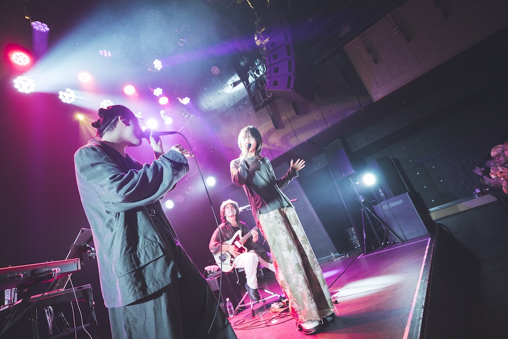 今回の公演のために書き下ろされたイントロが静かに鳴り響き、“親しみのあるスムースな空間”を体現するように、どこか懐かしく馴染みやすいムードで会場を包み込む。続いて1st EP収録の「燃える夜」、続けて2024年5月リリースのアップテンポチューン「OVERTIME」を披露。「OVERTIME, OVERTIME」1年ぶりとなるワンマン東京公演を待ち望んでいたファンの大きな歓声が会場に鳴り響く。「今日の夜は長いですよ、よろしくお願いします!」