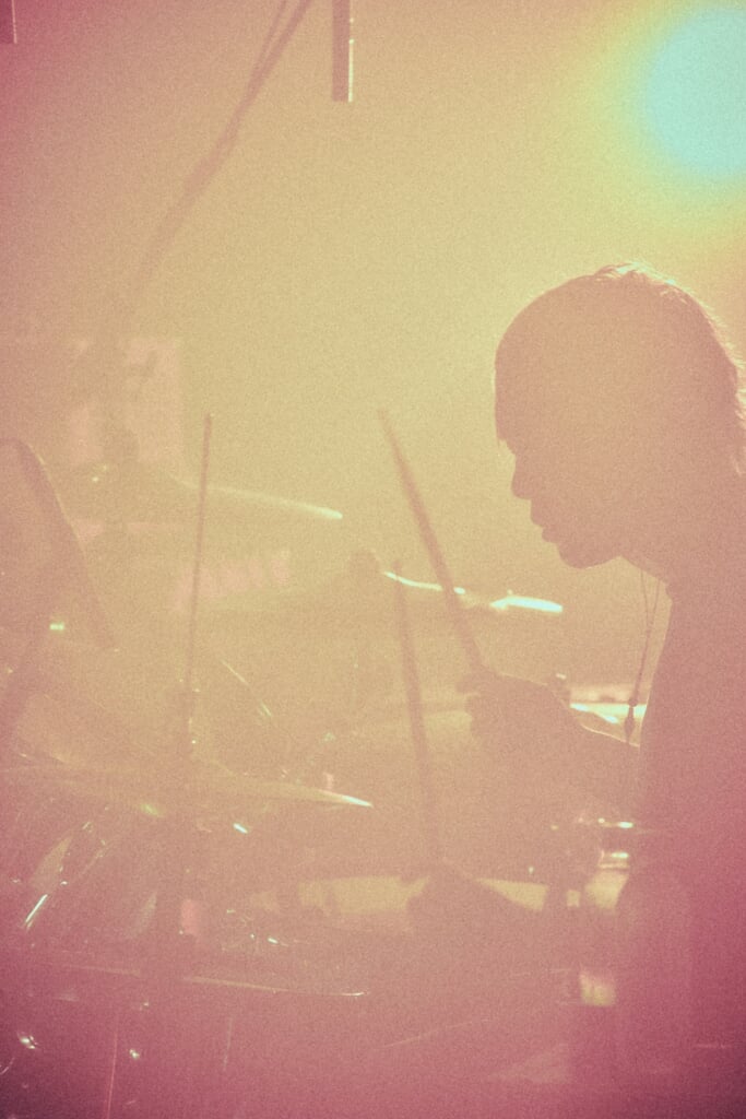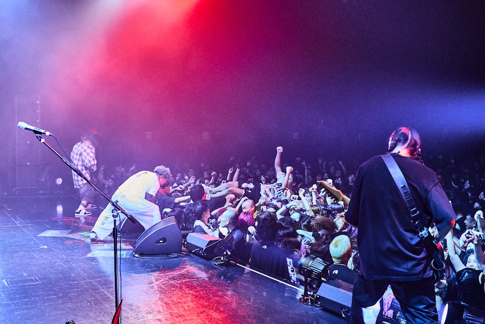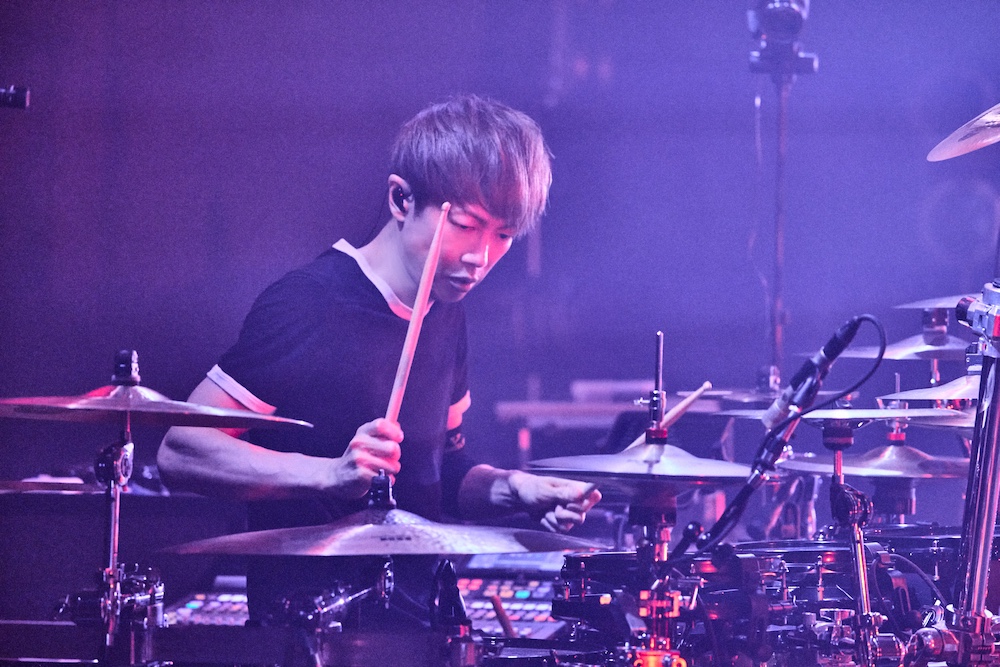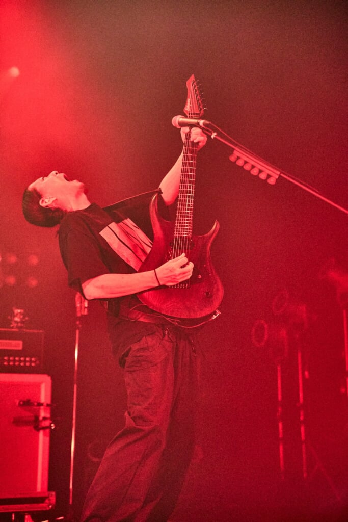 後半もその選曲イメージは変わらずで、激しい曲群のなかでも同日特にアグレッシブだった「nakano kill you」では、クラウドサーフも飛び出した。タイトルどおり中野のドラムが特にフィーチャーされ、炸裂するドラミングが圧巻だった。そしてラストは落ち着いた歌唱ナンバーで、アンサンブルのスペースを大きく使った「傍観」にてフィニッシュとなった。アウトロにてTKは絶叫し、中野は充実した表情を見せ、345はベースを感情的に鳴らしフロアに置きステージ袖へと去っていった。