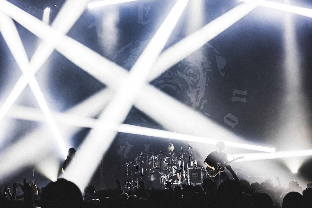 そんな2バンドの激突とあって、フロアは開演前からムンとした熱気で充満している。そしてデジタリックなSEに促され、TK(Vo, G)、345、ピエール中野(Dr)が登壇。大歓声にハジかれギターアルペジオとともに始まったのが「abnormalize」だ。TKのほかにないハイトーンボーカルはフロア奥まで射抜くようで、一瞬にしてファンのボルテージを上げていく。また一聴するとノイジーな印象もあるギターも、そこここにペダルフレーズを入れていくなど、実に歯切れよく繰り出されていく。ここに345の、これも高域に特徴のある歌声が混ざり合うことで、ボーカルパートの層はひと際厚みを帯び、それをピエールのドラムがガッシリと支えるという、1曲目にして凛として時雨の骨頂が感じられる演奏を聴かせてくれた。