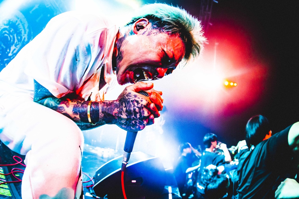 そんな苛烈な新曲でも切迫感のあるスクリームを炸裂させた京だが、当然ながら彼の歌唱はそれだけではない。例えば「眼光」でのように、大きく歌えるのもこのシンガーの魅力であり強みだ。ときにはクワイアのようなアプローチを見せる曲もあり、そういったテクニックはその曲が持つホラーテイストをより充満させてくれる。まぁ、彼はテクニック云々など気にせず、曲それぞれが必要としている音を、声を使って生み出しているのだろうが…。