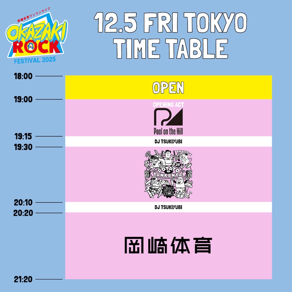岡崎体育ソロと既にファンにはお馴染みのバンドセット・ポテト探検隊に加え、東京と大阪で異なるオープニングアクトが登場する。大阪公演は岡崎体育含む3人組アーバンヒップホップユニット・いざゆかんとす!、東京公演は池田綾子とのアーバンアコースティックデュオ・Pool on the Hillがつとめる。
