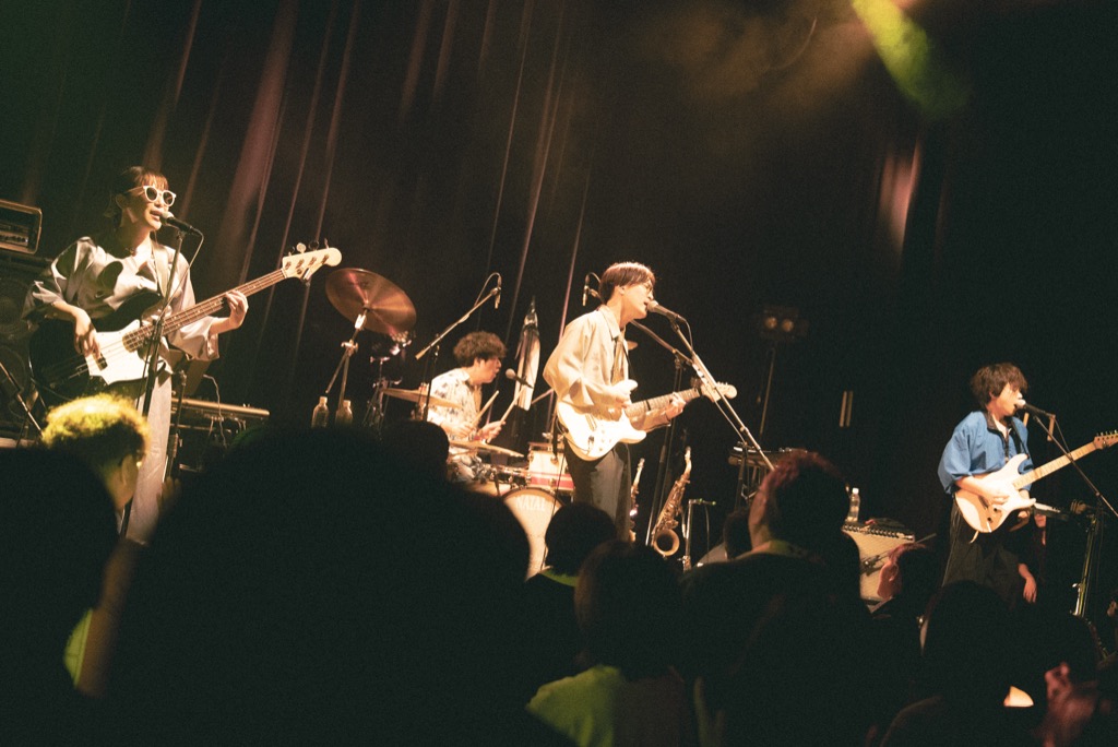 倉品翔(Vo)選曲の「スプートニクの恋人」では、観客の体は心地よいメロディーにより自然と揺れ、吉田卓史(Gt)選曲「ブルー・ライト・ブルー」では、しっとりとしたプレイに観客は全身に音楽を浸透させているようだった。続いて、つのけん(Dr)選曲「MOONLIGHT MUSIC」では、会場は再びスタンディングし、ステージから生み出される音楽に身を任せ、全力で楽しんでいた。延本(Ba)選曲「Bittersweet Christmas」は、季節感はないものの、バンドセットで披露する機会がなかったという想いを込めて披露された。