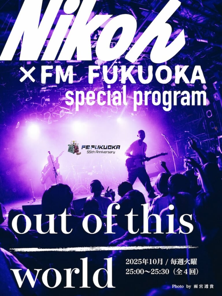 Nikoんの特番『out of this world』が10月の毎週火曜日、全4回にわたりFM FUKUOKAでオンエアされることが決定した。