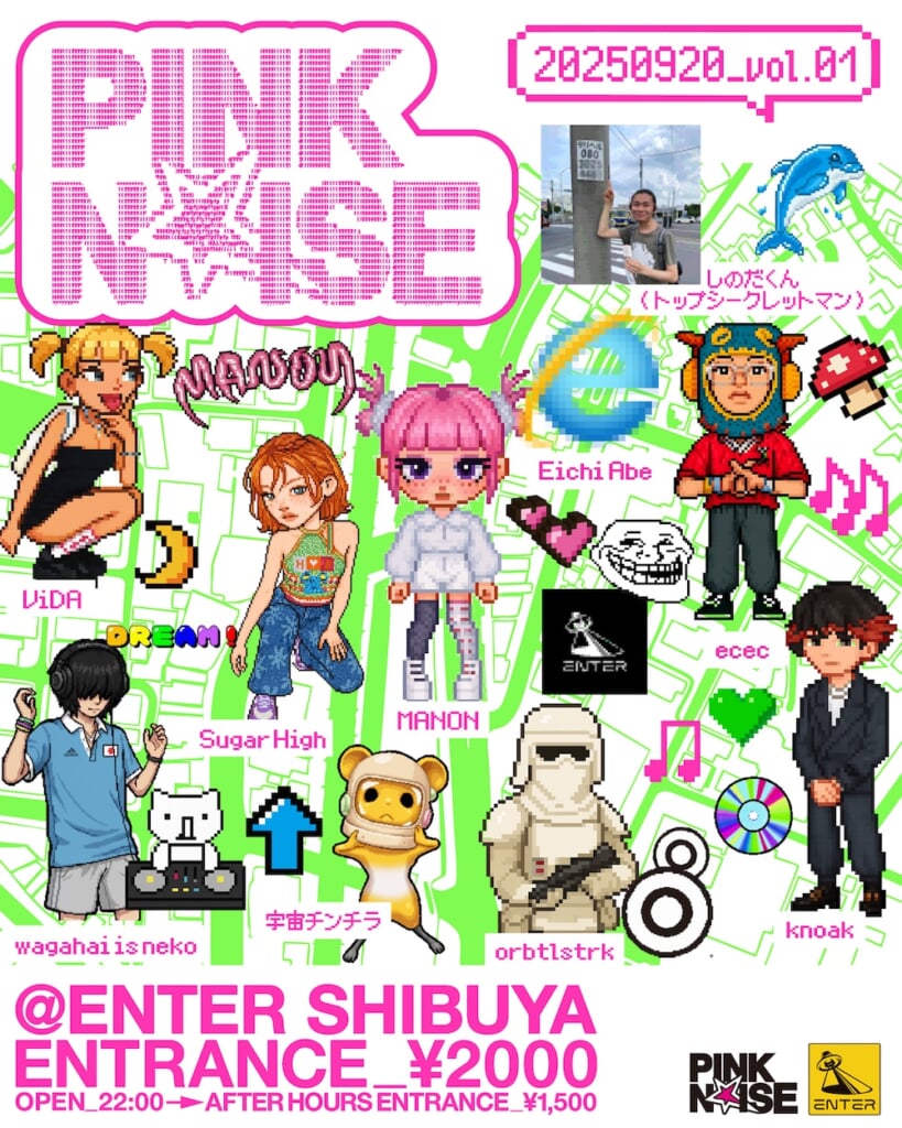 9月20日には、本作のリリースイベントも兼ねた主宰イベント<PINK NOISE>が東京・渋谷ENTERにて開催される。MANONとともに、knoak、Sugar High、ViDA、orbtlstrk、しのだくん(トップシークレットマン)、宇宙チンチラが出演する。