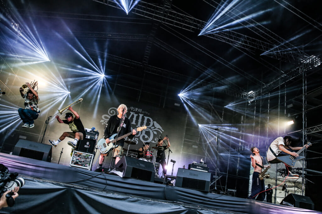 ホーン隊が躍動する粋なナンバー「Into The Soul」から「Endless Sorrow」へ。オーディエンスはヘドバンで一体となり、レゲエのリズムへ変幻自在に突き進むとサークルモッシュでもみくちゃに。そして「Fog And Clouds」の途中、ダブサウンドが幻想的なムードを描いたが、「踊れ、中津川~!」という猪狩の言葉を合図に一気呵成に踊り出す。そのノンストップなダンスサウンドの中にも緊張と緩和があり、飽きさせることがない。