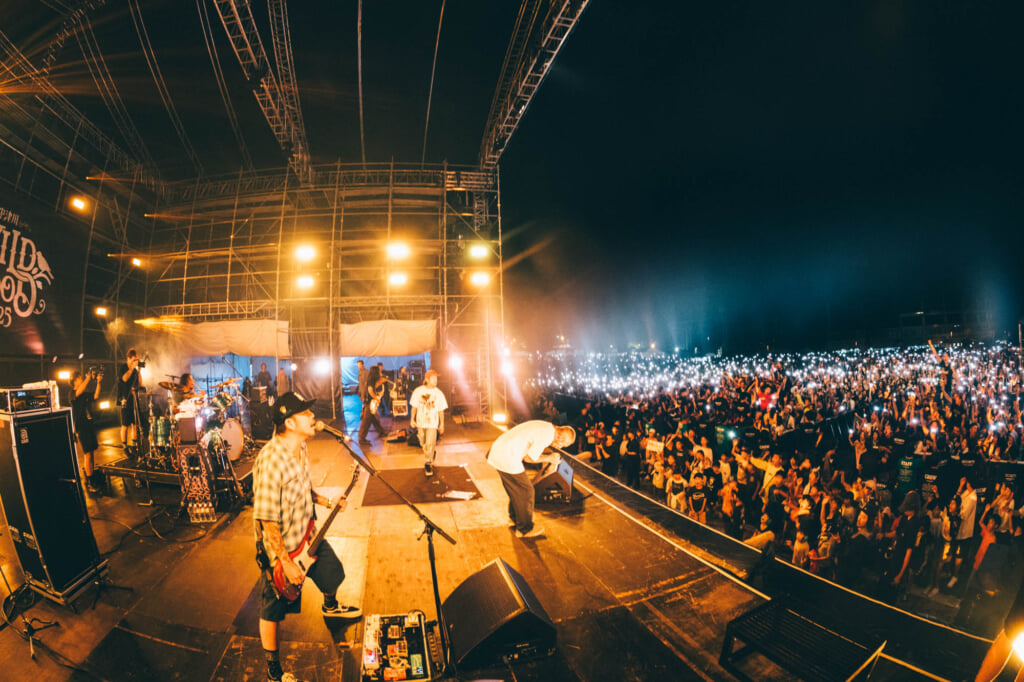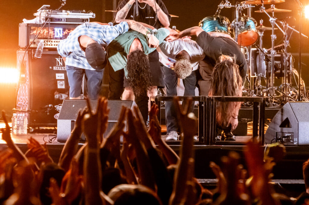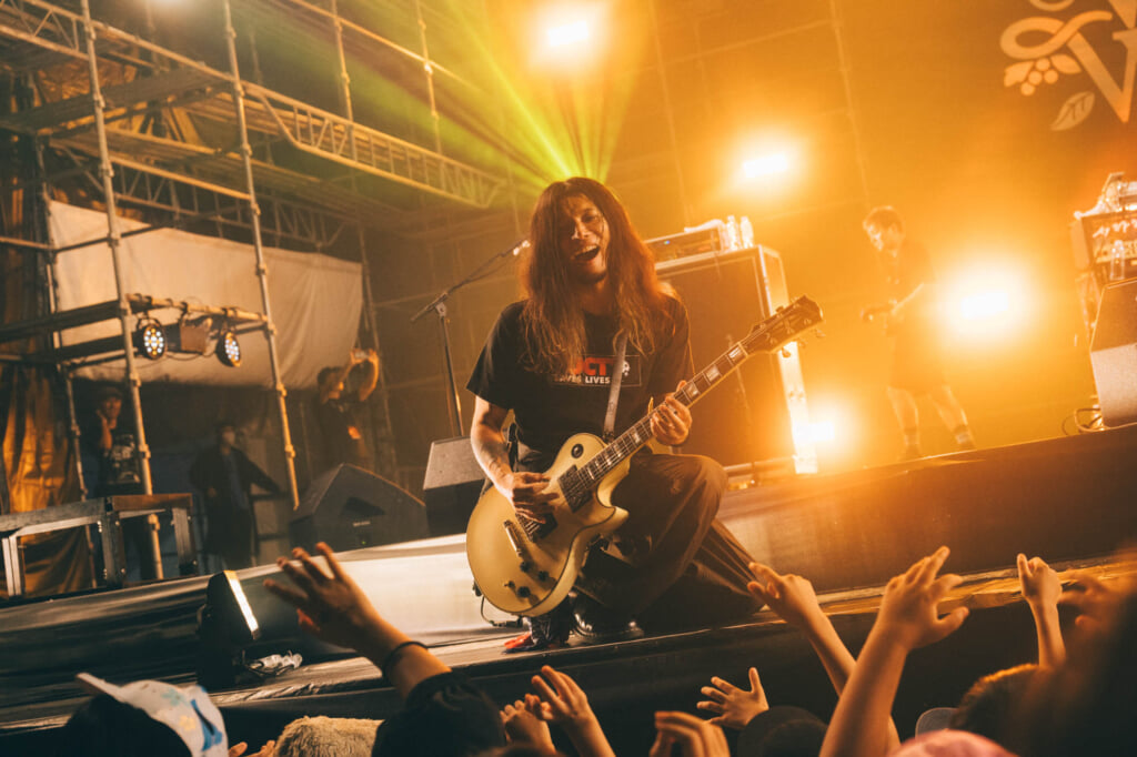 今日の主役は、完全にこの子どもたちになった。柵のこっち側では大人たちによるウォールオブデスが繰り広げられ、それを眺めている子どもたちに向けて、「中1になったらこっちに入れてやるよ」とJESSE。そして、自身の息子が生まれたときに書いたという「LIFE」を披露。4つ打ちのミドルチューンは幸福感に満ちていた。JESSEはステージの際まで来てしゃがみ、子どもたちに向かって歌い届ける。この喜びたるや、どれほどのものだっただろう。