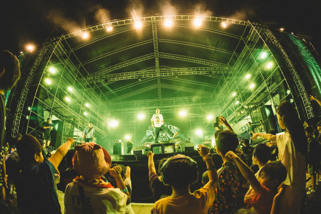 最後は、メンバー4人がステージ中央で肩を組み、オフマイクで大声を上げて感謝の挨拶。その後、メンバー全員子どもたちとハイタッチをしまくり、JESSEはステージから降り、いつまでもいつまでも子どもたちと握手を交わし続けた。こうして、<中津川 WILD WOOD 2025>は大団円を迎えたのだった。