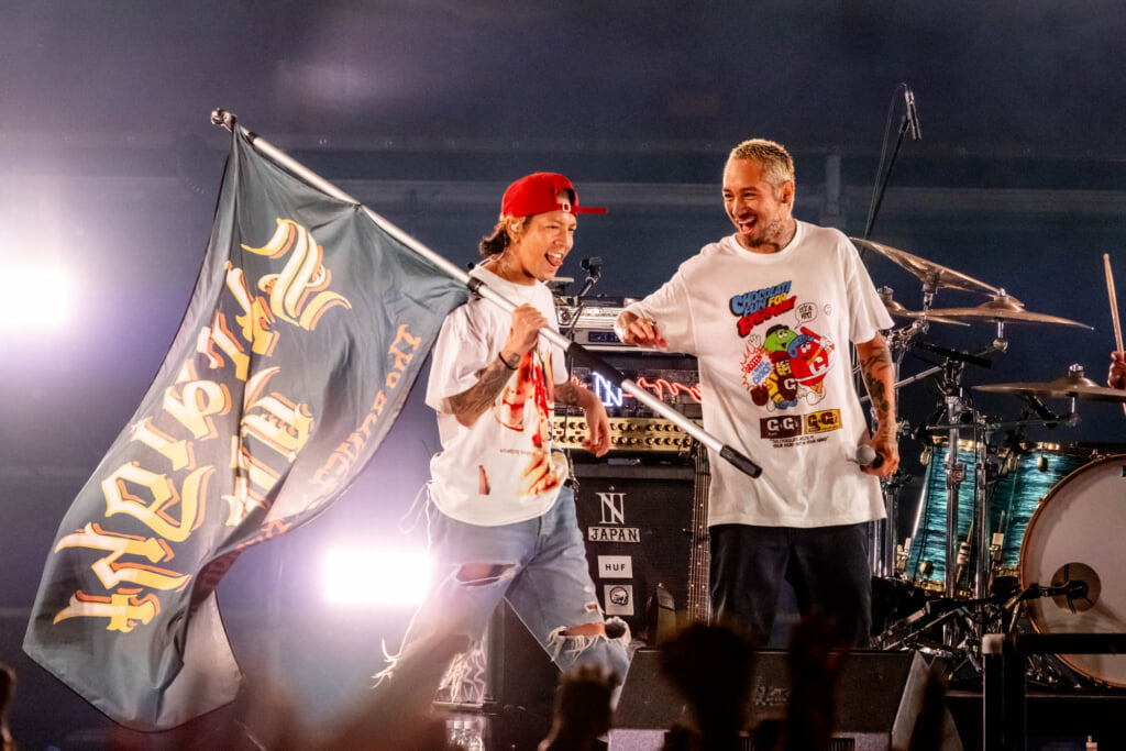 興奮はまだ続く。「こんなことが経験できて、めっちゃ幸せです。この幸せ、もうちょっと上げれるって信じてます……じゃあ、俺がやべえって思うKjに出てきてもらおうか」──すると、真っ赤なキャップをかぶったその人がステージに登場。観客が熱狂する中、演るのはもちろん、「Straight Up feat. Kj」。2024年産のミクスチャーロックに中津川のテンションはぶち上がった。
