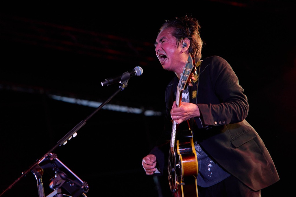 小暮が弾くアルペジオを中心とした穏やかな伴奏が始まり、「ソウルがある」へ。文字通りのソウルフルな歌声で、《人生はゲームだと疑わないキング達よ》《ミサイルを撃つな ミサイルが落ちたそこには ソウルがある ソウルが血を流している 愛が生きている 愛が叫び声を上げている》と、力強い声で歌い上げる田島。バンドのタイトな演奏に支えられて圧倒的な声量で最後まで歌うと、「どうもありがとう!」と感謝を伝えて、ギターのフィードバックを残してステージを後にした。その真摯なメッセージと魂の歌声に、誰もいなくなったステージに送られる万雷の拍手が鳴りやまなかった。