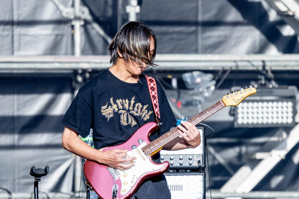 そしてhide with Spread Beaverのカバー「ROCKET DIVE」がスタートすると、爽やかな疾走感を帯びたサウンド。腕を振り上げながら笑顔を浮かべる人々を楽しそうに眺めながら、ステージ上のメンバーたちは演奏の熱量をグングン高めていた。