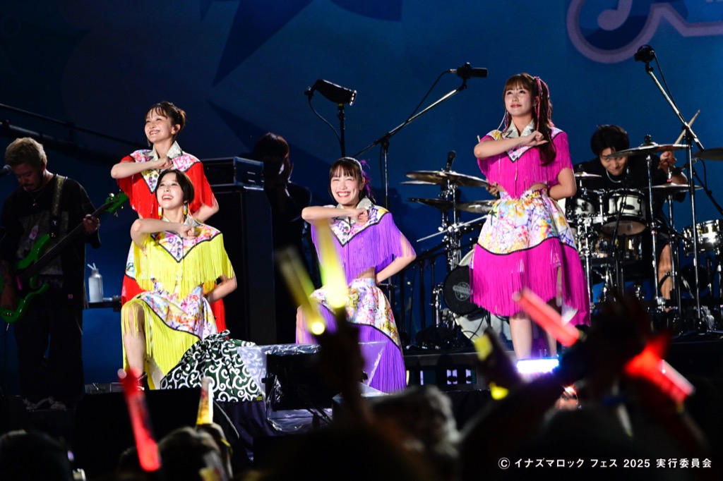恒例のメンバー紹介の後、今年7月にリリースした『機動戦士ガンダム アーセナルベース FORSQUAD』主題歌「Event Horizon」、4月リリースのプロ野球・読売ジャイアンツ 田中将大投手 2025年シーズン登場曲「Acceleration」をプレイ。そして「私たち大人っぽい曲もあるんです。夜空に合いそうなこの曲」と「Re:Story」を披露し、ガラッと雰囲気を変えた魅力を見せた。最後に選んだ曲は、「走れ! -ZZ ver.-」。途中でステージの照明を落とし、会場にメンバーの持つペンライトと客席のペンライトだけが輝く演出もあり、それはまるで夜空に浮かぶ星のようだった。本当のラストは、イナズマではお決まりとなった西川が参加する茶番の時間。百田夏菜子が持つ唐草模様の風呂敷の中から、高城れにがパープルのファーつきマントを取り出し、ティアラをつけると、ミュージカル風に歌い出した。「歌を届けたい、みんなに」「この4人で織りなす物語、高城れにの物語はまだまだ続いていく」と続ける。そして、「でも(自分以外の)この3人では力不足なの 呼び覚ませ あの人の声を」「みんなも叫んで!T.M.Revolution!」と客席を巻き込んでのT.M.Revolutionコール! それに応えて登場した西川と一緒に、ももクロ全員で「LEVEL 4」をプレイした。マイクを両手で握りしめてセンターで歌う西川は「こういうのって、ワンコーラスで終わるものじゃないの?」「自分のライブでもそんなにやってないのよ、この曲」と終始困り顔だったが、こんな茶番ができるのもイナズマだけ。西川とももクロの関係であればこそ。メンバーも「このあと兄貴が出てくるってわかってるから、ぐちゃぐちゃなれにちゃんのミュージカルをあたたかく見守ってくれる」と話した。最後は、西川もメンバーのセンターに並んでお決まりの「Z」ポーズを披露、1日目の幕を下ろした。