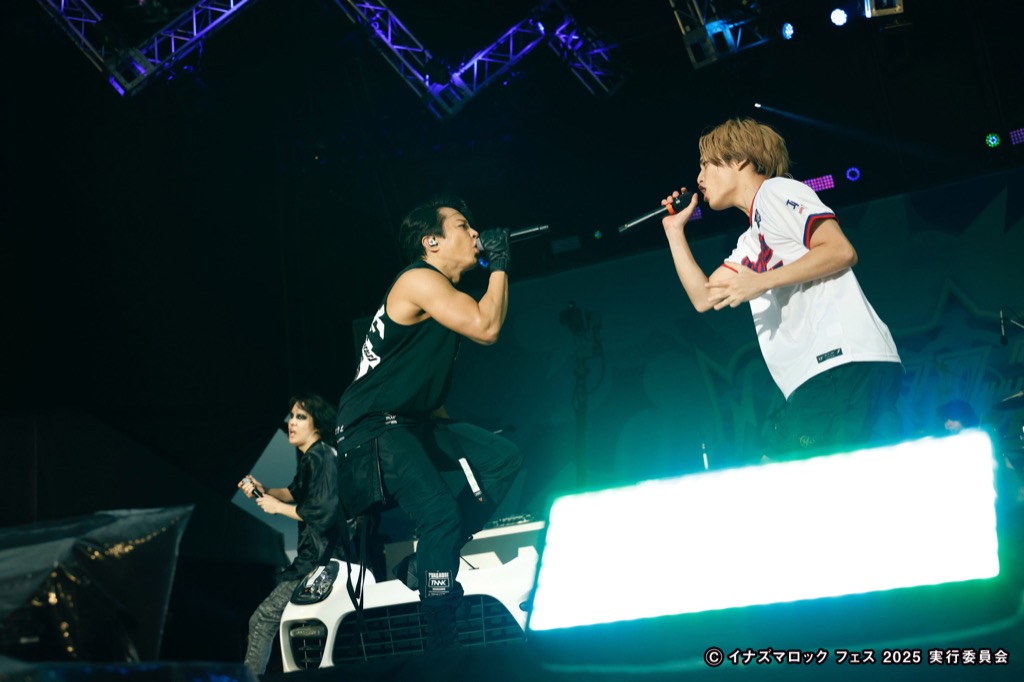 「我らがアニキ、西川さんがイナズマに呼んでくれました。すごいキラキラしたアイドルさんの後にやらせてもらって恐縮ですが、そういうところがイナズマの真骨頂。俺らのところも全然怖くないんで、頭空っぽにして身をまかせてノってください」と、「Let Me Hear」、そして「Virtue and Vice」へ。続いて彼らと西川がコラボした「Be Affected」のイントロが始まると、客席から歓声が上がる。ステージに西川も登場し、Soと最高に熱いハモリを披露した。西川が去った後もさらにエネルギッシュに盛り上がり、「Party Boys」「Luck Will Be There」まで全7曲、会場を大いに暴れさせてくれた。