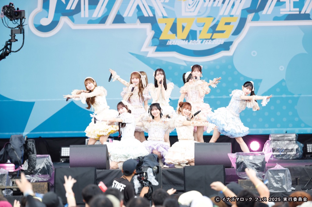 続く=LOVEは、2018年のイナズマで風神ステージに出演。7年越しにメインステージへの出演を果たしたアイドルグループだ。淡いメンバーカラーのミニドレスで登場、1曲目は「絶対アイドル辞めないで」、キュートな魅力で会場を盛り上げる。客席のファンから息の揃ったコールも聞こえる。その熱気のまま「超特急逃走中」、「内緒バナシ」と続けてプレイ。「7年ぶりのイナズマロック フェス、とってもうれしいです。最高の1日にしましょう」と言うと、「イコラブ!イナズマ!」と客席を煽ってメタル調のハードなナンバー「いらない ツインテール」へ!「Oh!Darling」ではタオルを回し、10月8日発売の19thシングル「ラブソングに襲われる」も披露。「この空がトリガー」、「とくべチュ、して」の 全8曲をパワフルに魅せ、イナズマに爪痕を残した。