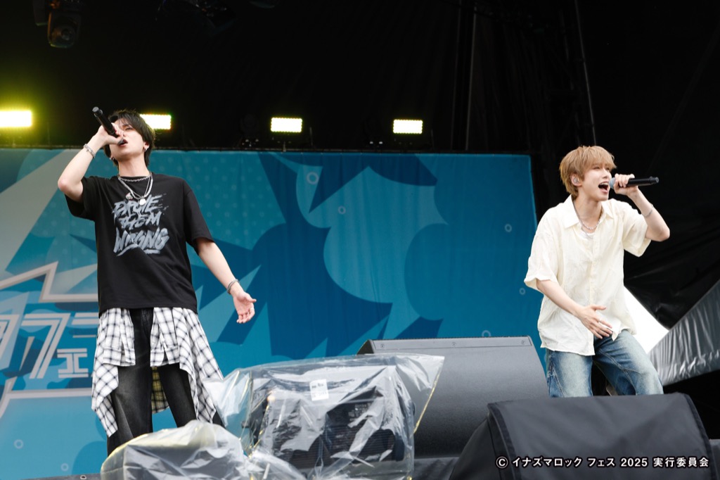 尾崎は「高校生の時の友達が西川さんの大ファンで、その時からイナズマを知っていた、まさか自分が出る側になるとは!」と出演を喜び、あいにくの曇天を見た藤牧は「匠海は晴れ男」と紹介。また、8月にリリースされた「Unrequited Love」、尾崎・藤牧が作詞を担当した爽やかなラブソング「プロポーズ」も披露。「NO MORE CRY(D-51 Cover)」では客席も一緒になって歌い、最後はタオルを振り回して歌うパーティチューン「Party Goes On」へ。ボーカルユニットの実力をみせたステージとなった。二人がステージを後にすると、空にはうっすらと日差しが出てきた。