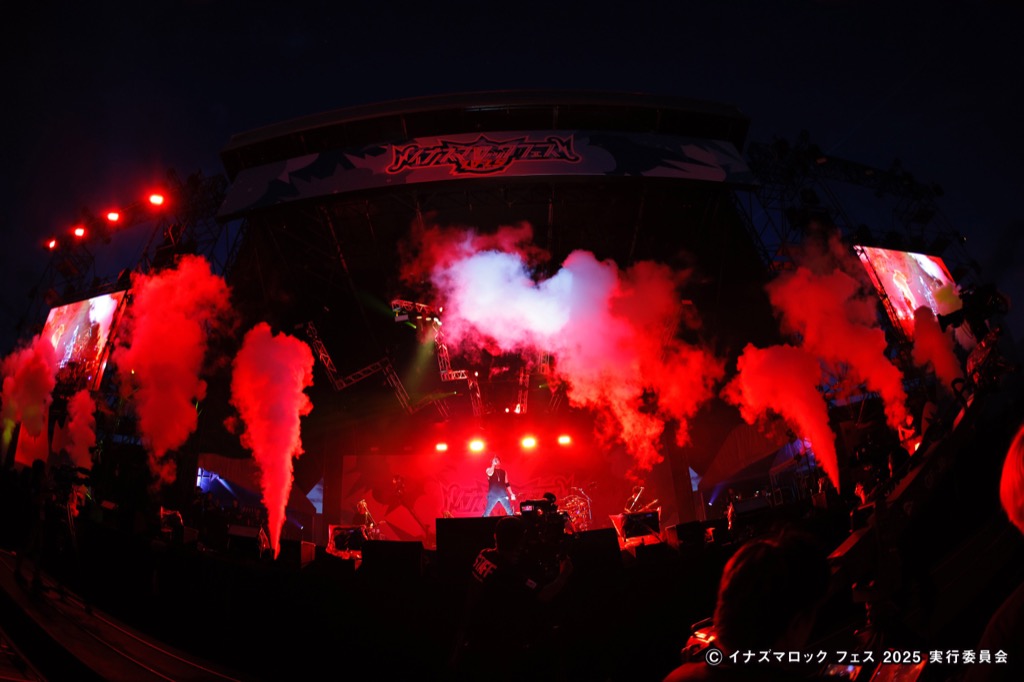 そして、イナズマロック フェスとして17年の歴史の最後を務めたのはもちろん、T.M.Revolution!最後の最後をお馴染みのナンバーではなく、現在開催中のツアー「T.M.R. LIVE ELECTION -VOTE 30-」と同じくファン投票で選ばれた楽曲で構成。事前にセットリストを発表していたこともあり、1曲目「SHAKIN’ LOVE」から客席の一番後ろの人まで手をあげ飛び跳ねて盛り上がる。「MID-NITE WARRIORS」では、サビで会場一体となって大合唱。「VITAL BURNER」では歌詞の「抱き合える君だけ必要だろ」の部分を「イナズマだけ必要だろ」に変えて歌い、客席に笑顔を見せた。
