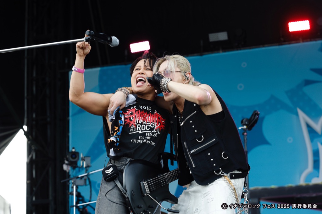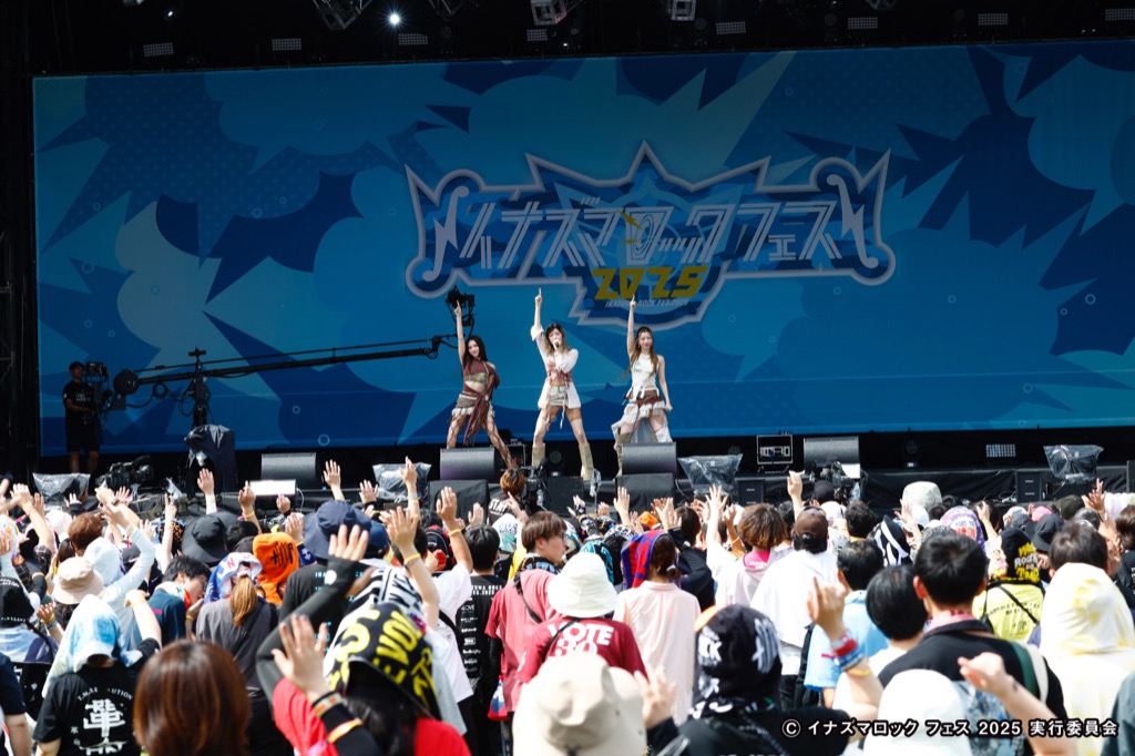 2日目となる21日は、草津市の橋川市長による開会宣言で幕開け。トップバッターは、滋賀県で初めてパフォーマンスするというIS:SUE。RIN、NANO、YUUKIの3人が元気よく飛び出し、「SHINING」「CONNECT」「THE FLASH GIRL (Rock ver)」を続けてプレイ。「めちゃ暑いね。水飲んでますか? この後も水も太陽もしっかりあびて、頑張っていきましょう!」「今回の衣装のコンセプトは海賊。でもここは海じゃなくて琵琶湖だから湖賊!?」など、ユーモラスに話して客席との距離を縮める。そしてグループの自己紹介を兼ねた「自己紹介rap」、続けて「No Game Over」「コエremix inter」を、ダンスブレイクやタオルまわしを交えて披露した。彼女たちのキュートな魅力も垣間見えた「Tiny Step」、そして最後は「Breaking Thru the Line」で、しっかりとパフォーマンスを届けた。