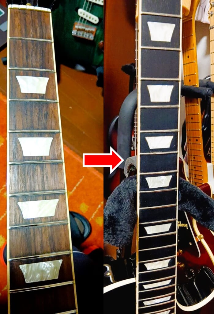 ところが令和現在、あまり黒は見かけないかも。特にレスポールは、黒カス以外は目につきませんね。最近のスタンダードは、トップだけブラックで他はナチュラルだったりして。コストカットなのかな。シャネルズみたいで今イチですな。