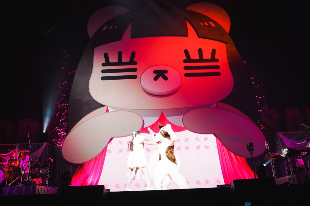 ここからは、小芝居を取り入れたパフォーマンスに突入。「今日はとてもスペシャルな日でしょ? だから彼氏を呼んだんだけど、紹介してもいい?」と犬くんを呼び込み、「浮気したらあかんで」を振り付けを交えて歌唱。さらに「もう夏が終わっちゃうけど、あたし夏っぽいデートがしたいなぁ」と述べると、車を模したトロッコが現れる。犬くんが運転する車に乗ったコレサワは、フロアを横断しながら「ペーパードライバー」を歌った。