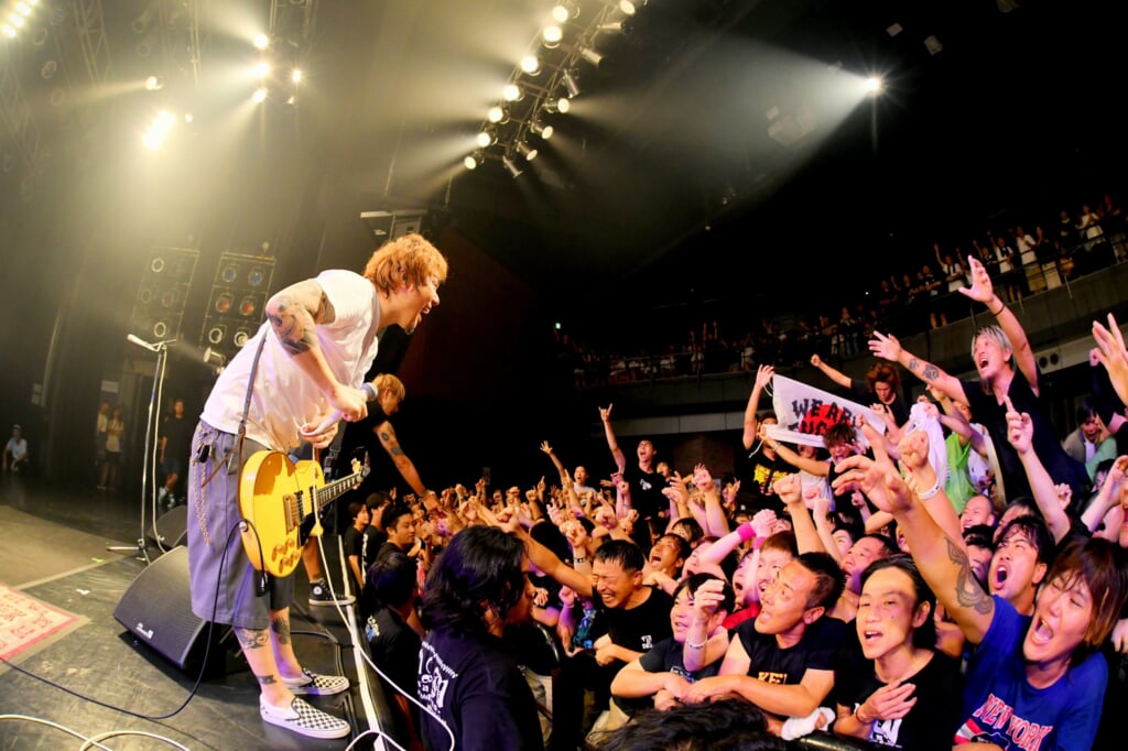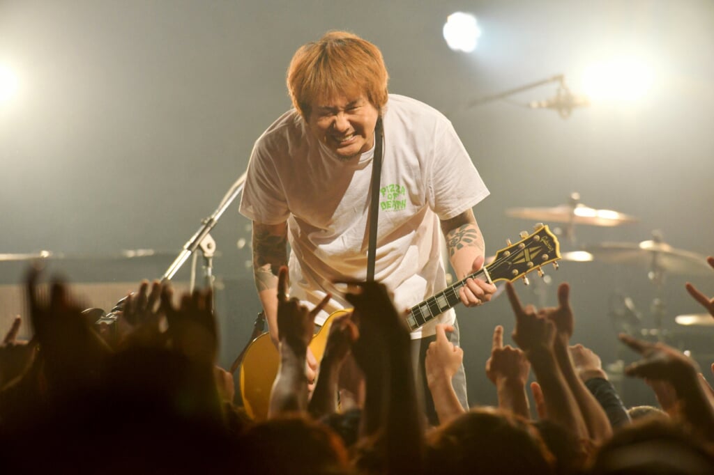 「でも、ありがとうと言ってもらえると、何よりも励みになるよ。若い時は、ありがとうなんて気持ちもなくてさ。まあ、今でもそういう気持ちはあるよ。俺達はイーブンだしさ、勝手に見に来てんだろくらいに思ってたけど、この歳になると、平日に1,400人も1,500人も来てくれるのかって不思議に思うんだよ。当たり前のことじゃないんだって、この歳になって気づかされた。本当にありがとう。いくらパンクだ何だって言ったってさ、生意気言ってりゃいいだけじゃないんだよな。若い時はそう思ってたし、実際、生意気だったけど(笑)、この現実を目の前にして、ありがとうが出ない奴はパンクでも何でもないと思う。俺達、みんなが来てくれなかったら、ただの変わったおじさんだもん(笑)。せいぜい輝けるのがここなんだよ。そんな場所を与えてくれてありがとうございます。今日は弱気なことを言ったけど、やれるところまでやるよ。だから、一緒に行こうとか気持ち悪いことは言わないけど、また、こういった景色の中で目を合わせられたらいいな!」──横山健