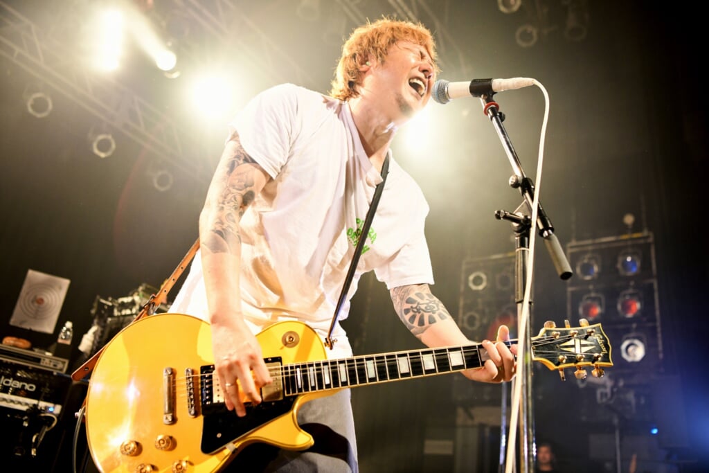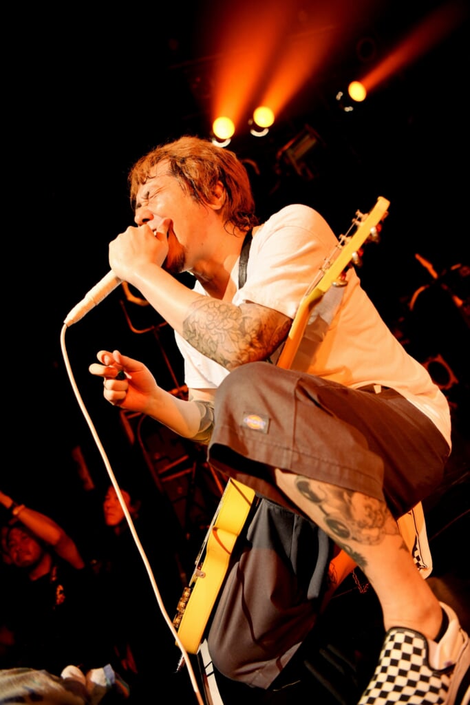 観客のリクエストに応え、「代わりに次の曲は飛ばすよ(笑)」と言いながら演奏したのは、セットリストに入っていなかった「I Go Alone Again」。横山がコードをかき鳴らしながら歌い始めると、早速、観客がシンガロングする。なんだ、聴きたかったんじゃなくて、歌いたかったんじゃないか。横山が歌うのをやめ、観客のシンガロングだけを響かせたところにバンドインして、EKKUNが竜巻かせた2ビートともに、バンドの演奏は急加速。最後は横山とJunのジャンプでキメるそのカッコよさと言ったらない。