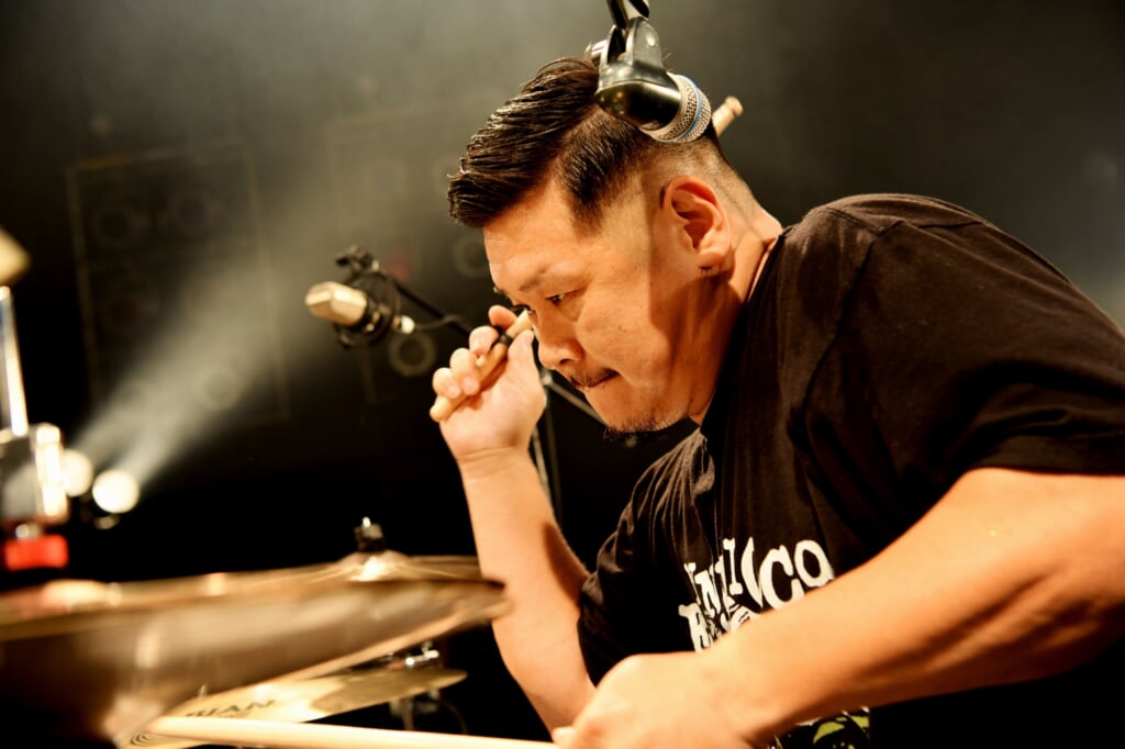 無事リカバリーした横山はもちろん、高速のクランチリフを刻む南英紀(G)、フレーズをグルービーにうねらせるJun Gray(B)、2ビートも8ビートも巧みに操る松本“EKKUN”英二(Dr)──すでに8ヵ所を回ってきたバンドの演奏もキレキレだ。しかし、ライブはまだ序盤も序盤。