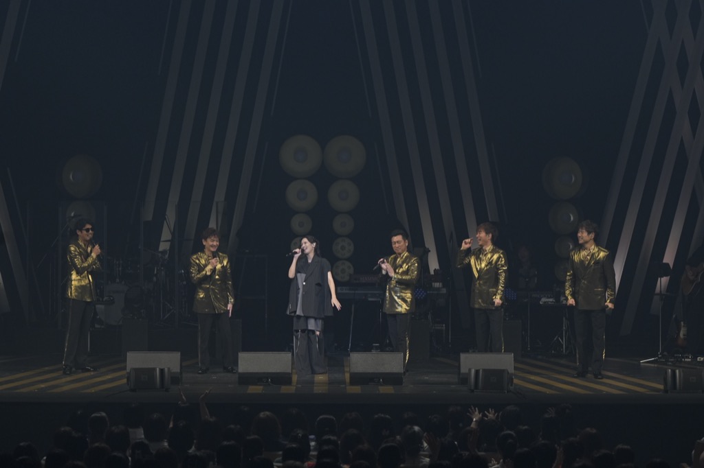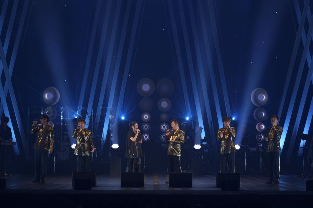 前半の衣装とは打って変わり、光沢が眩いゴールドのジャケットに身をつつんだ5人がまるで星空のようなライトを背に登場し、5人の歌声のみで奏でられる「星屑の街」で会場は神聖な空気を感じさせる雰囲気に。「我々が学生の時、サークルの創始者だった方が作ったこの曲が、我々にとって最大のチャンス、デビューへと導いてくれたんです」と黒沢が語り歌った「Promise -a cappella-」では、ゴスペラーズの音色を聴いてくれる全ての人と約束(Promise)を交わし、30年間色あせることなくまっすぐに歌を届けてきたからこそ伝わってくる、5人の声がひとつの音となるたしかなハーモニーが紡がれた。