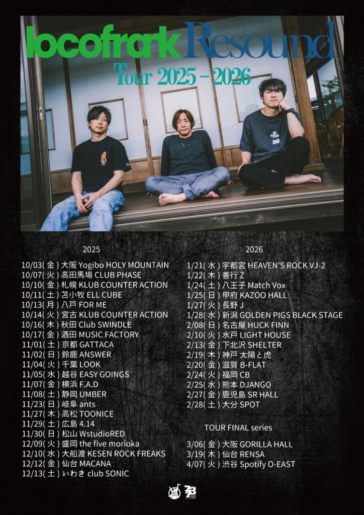 locofrankが9月3日、8thフルアルバム『Resound』をCDリリースした。同アルバムを引っ提げたリリースツアー<locofrank presents Resound Tour 2025–2026>が10月3日の大阪 Yogibo HOLY MOUNTAIN公演から幕を開ける。