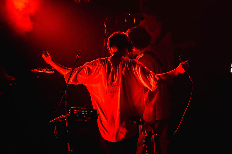ここでステージ上からメンバーは一度中座。豪雨から晴れ間を表すようなSEの調べが鳴る中に現れたのは、これまでも彼らの楽曲制作に参加してきたサポートキーボードの酒井拓。彼の力を得ながら放たれたのは「Twenty-Twenty」だった。コロナ禍以降のニューノーマルを提示した楽曲は、この日白眉の出来で、青空へ手を伸ばすかのように鳴り響いたArata Yamamoto(G, Cho)のエモーショナルなギターソロも含め、「夜明け」を迎えたステージから第ニ章がスタートした。